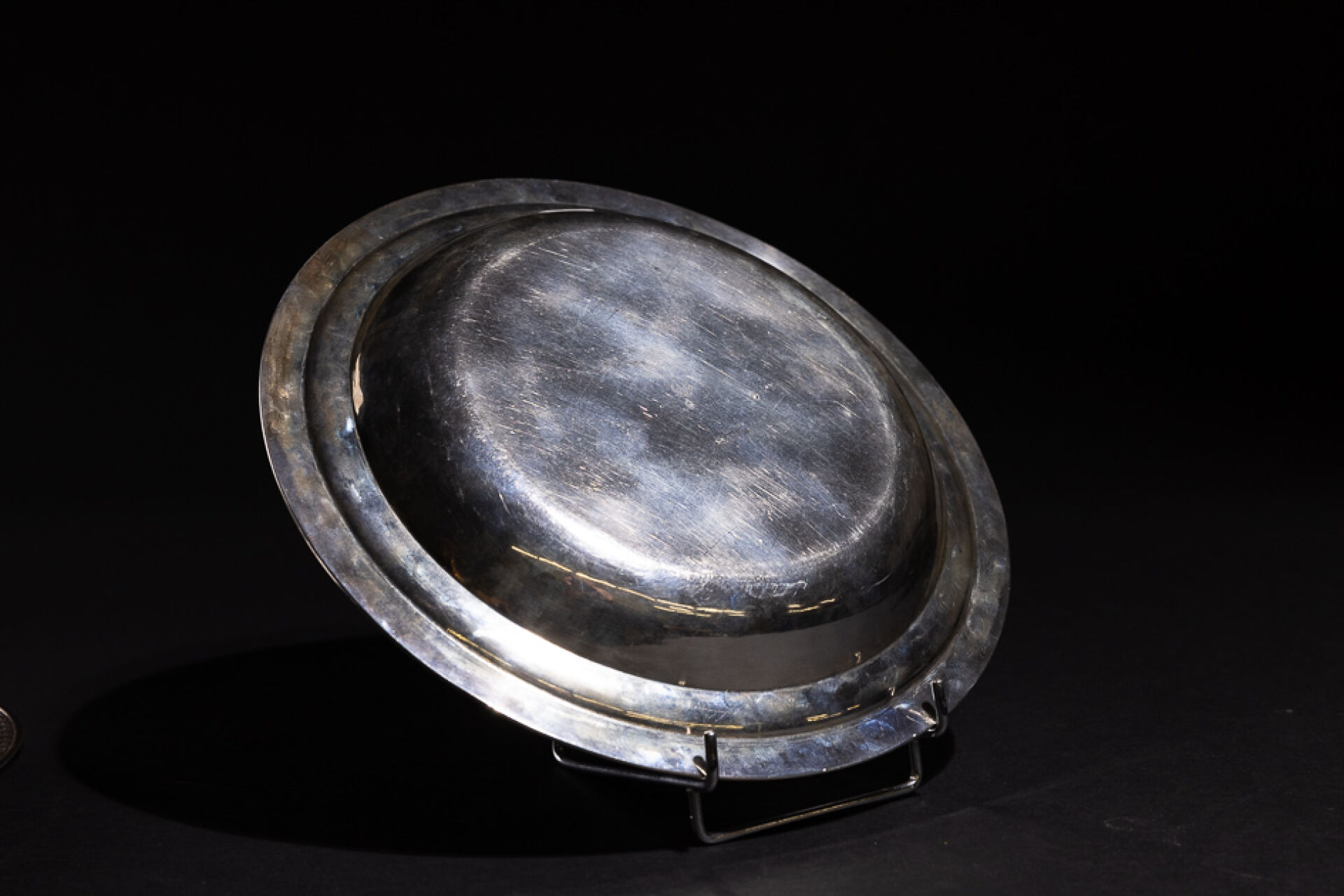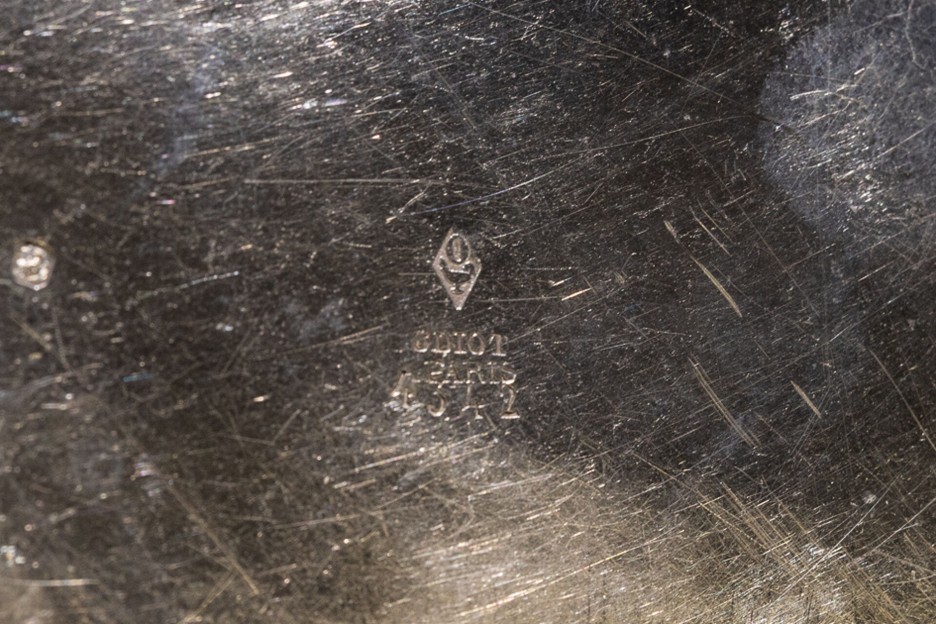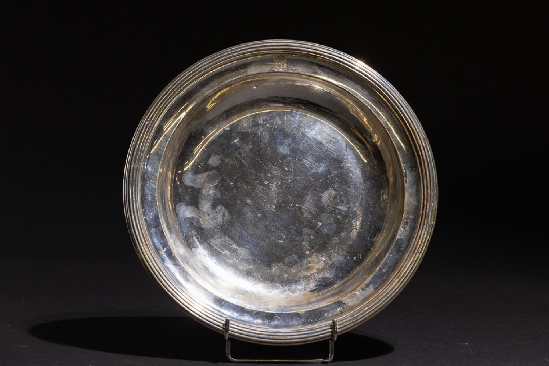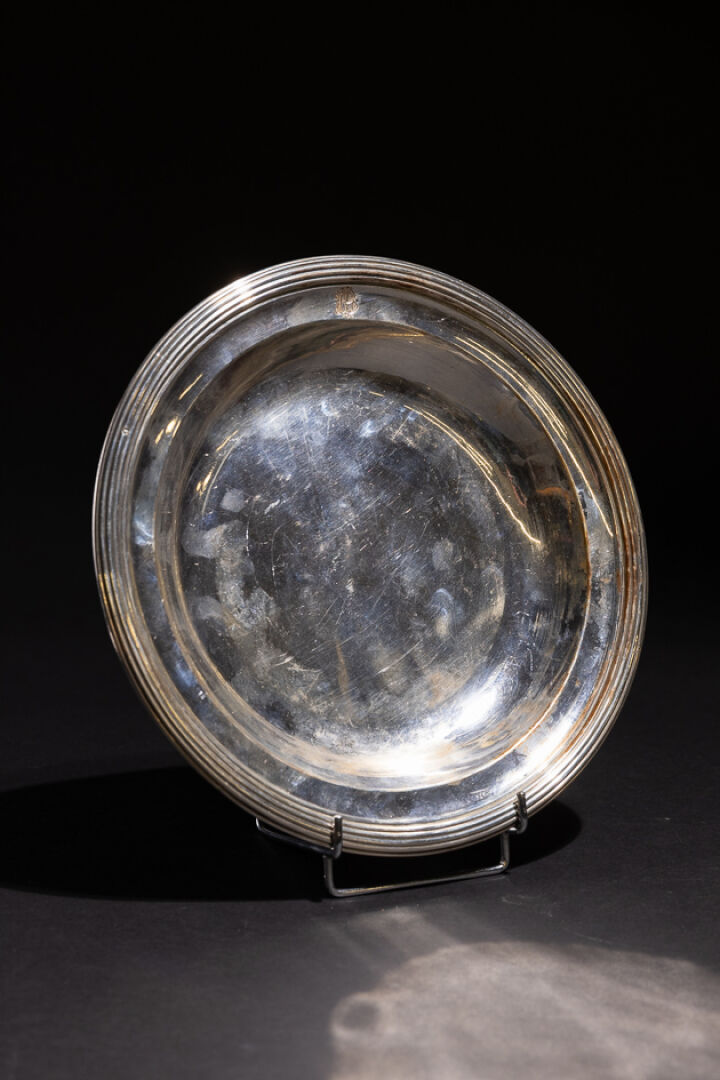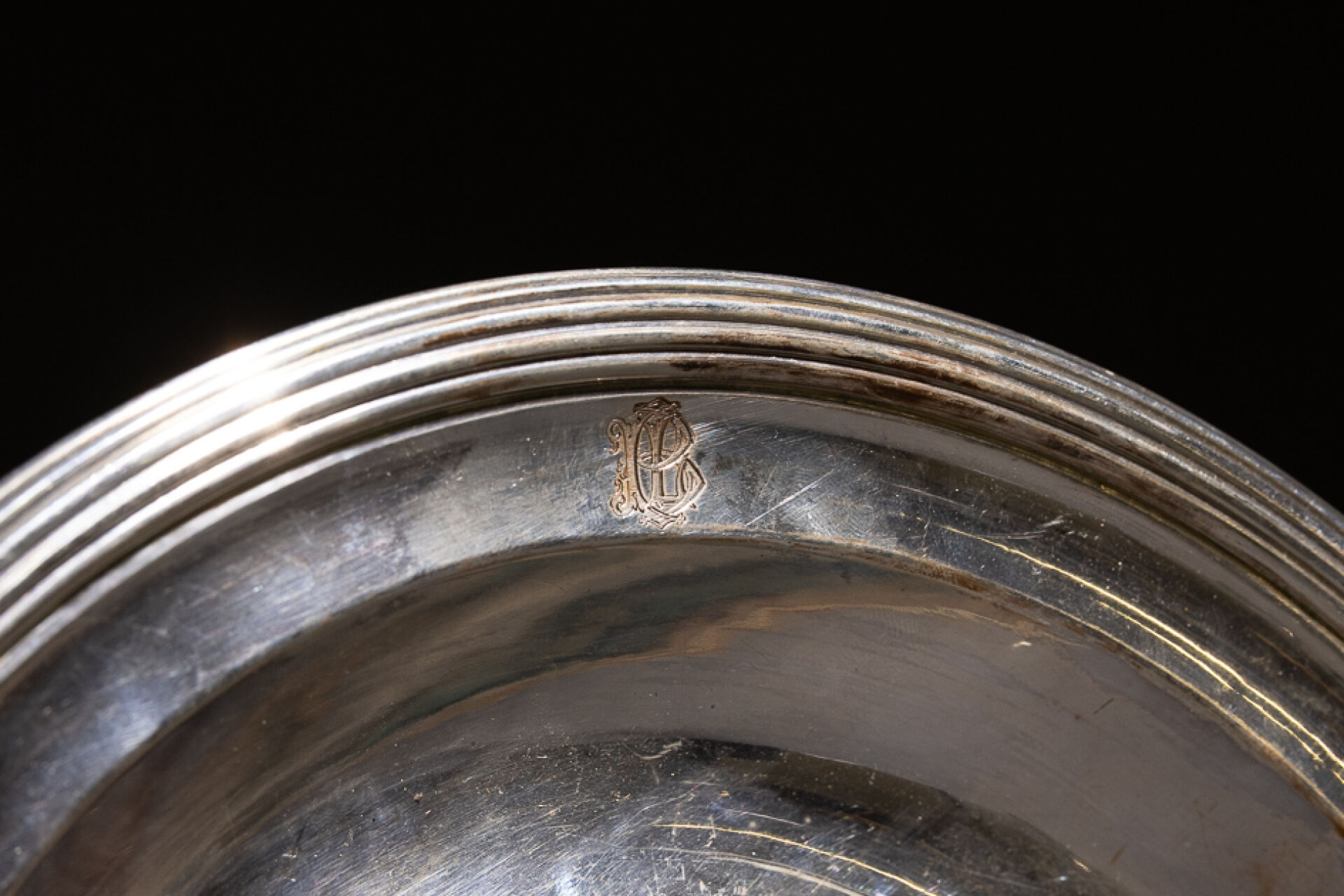 Maison ODIOT. Plat creux en argent à bordure à filets, l'aile monogrammée PL (rayures d'usage). Poinçon Minerve - Marqué et numéroté au revers 4342. Poids : 726.44 g