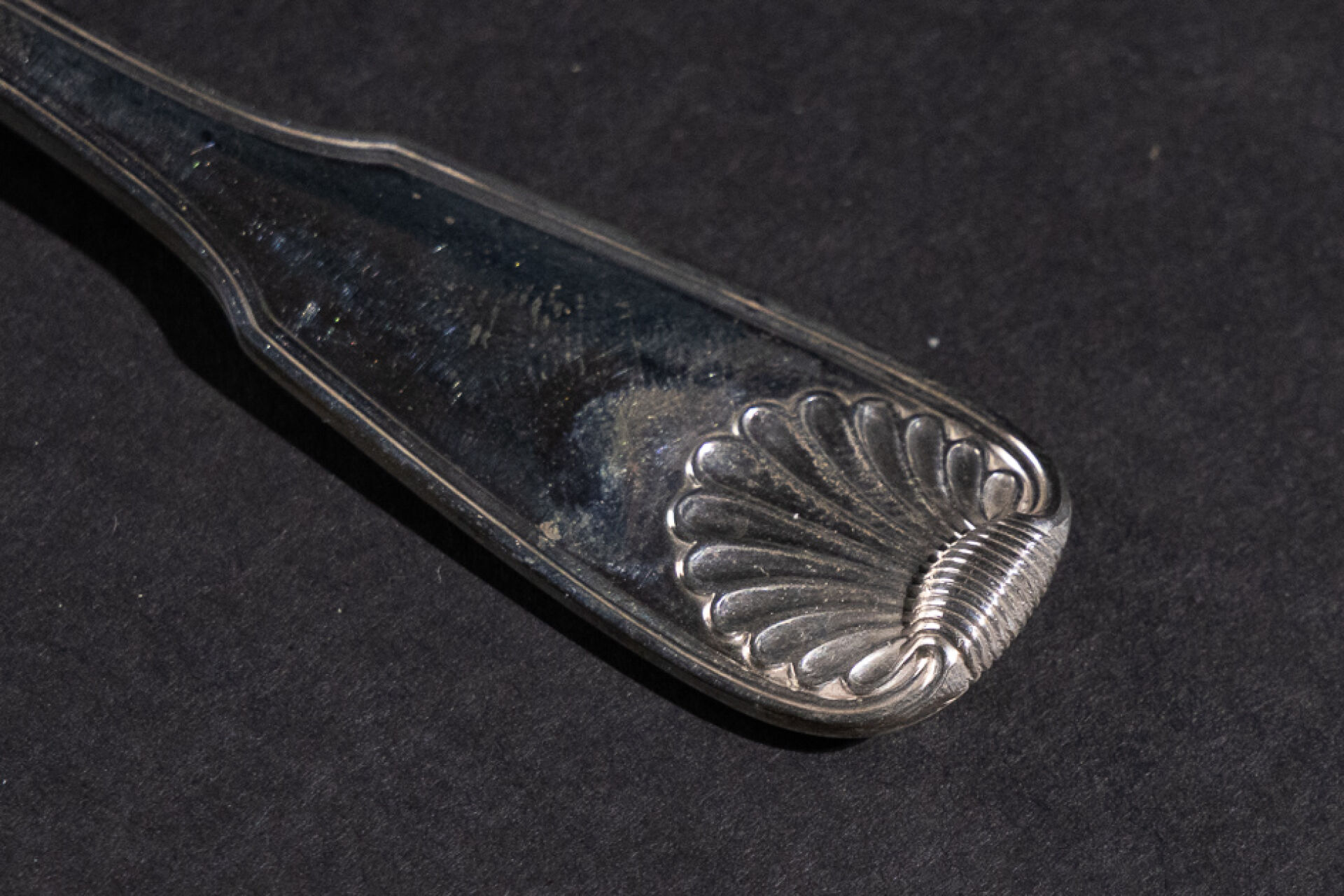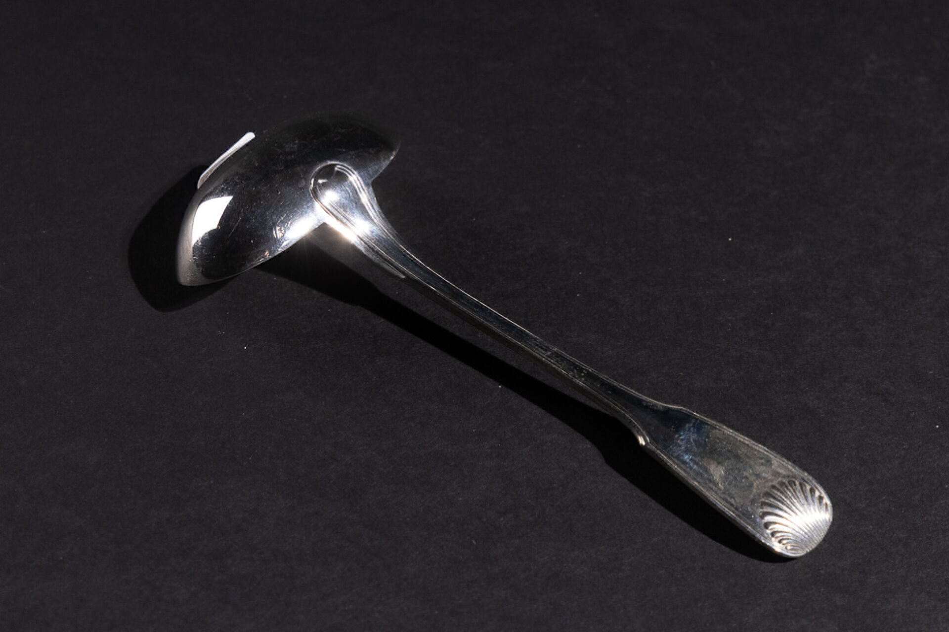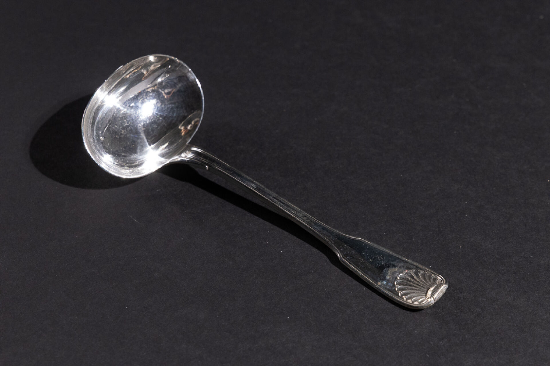 Cuillère à sauce en argent modèle filet-coquille. Poinçon Minerve Orfèvre TETARD frères. Poids : 107,89 g - Long. : 17,5 cm