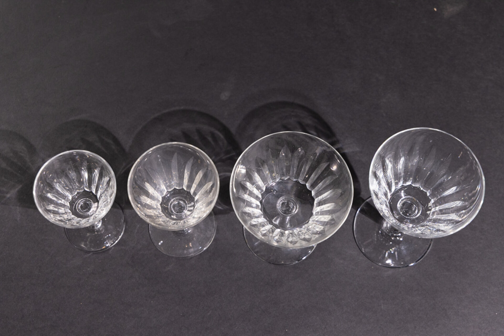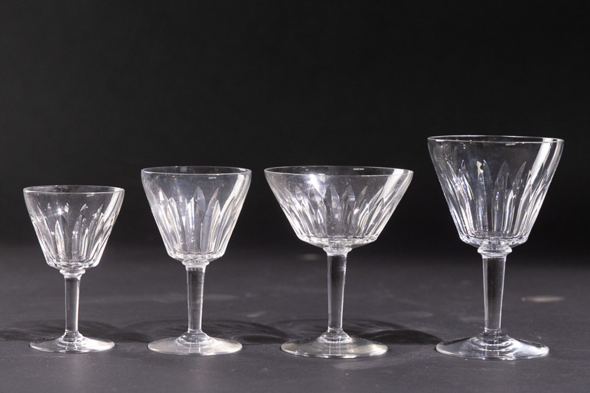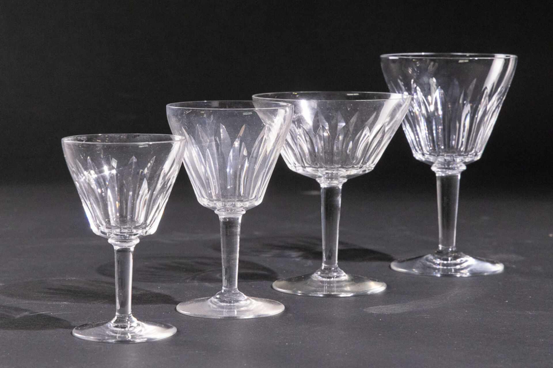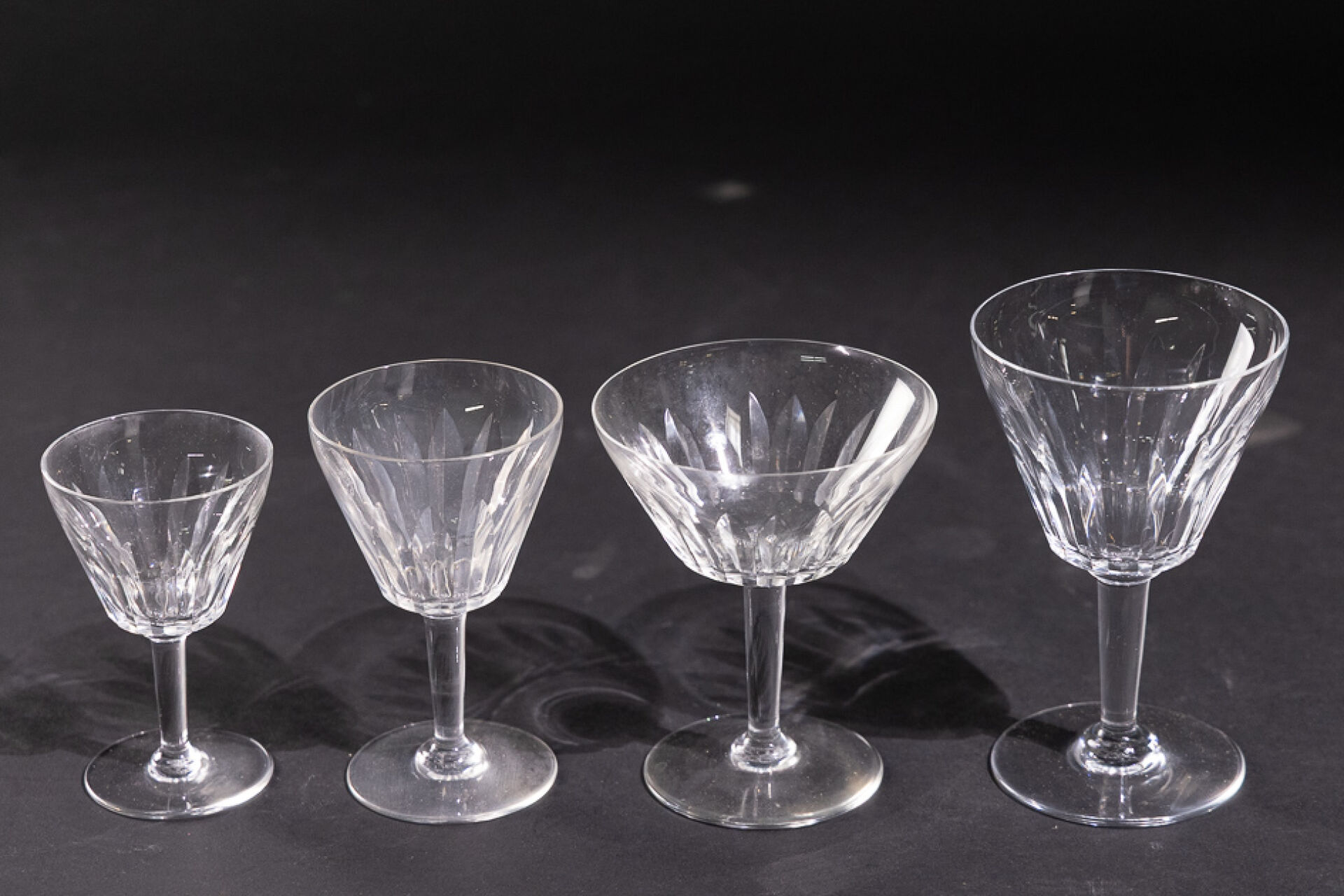 Maison BACCARAT. Partie de service en cristal modèle Val de Loire comprenant : - Onze verres à eau ; - Douze coupes ; - Douze verres à vin blanc ; - Douze verres à vin rouge Marqués au revers. Cartons d'origine.