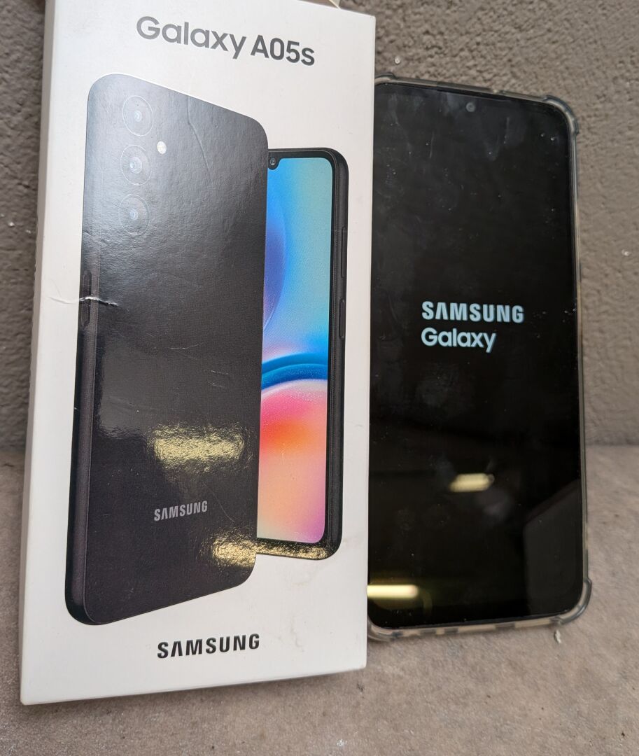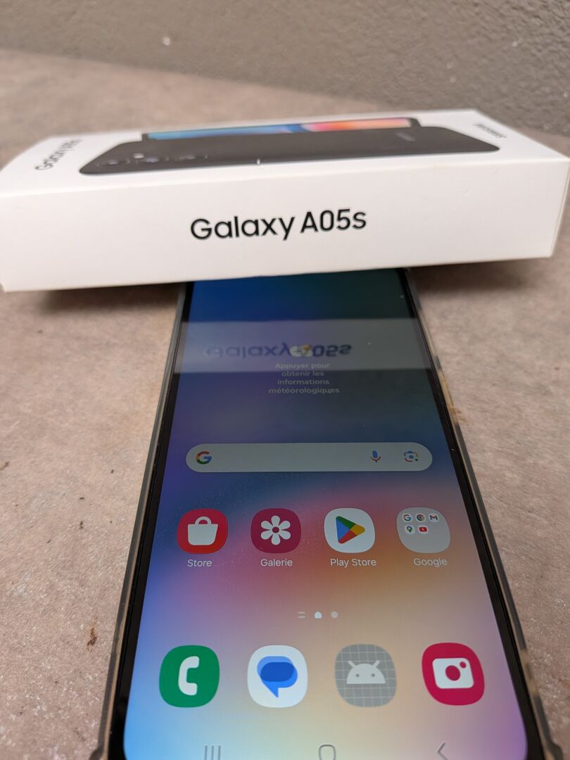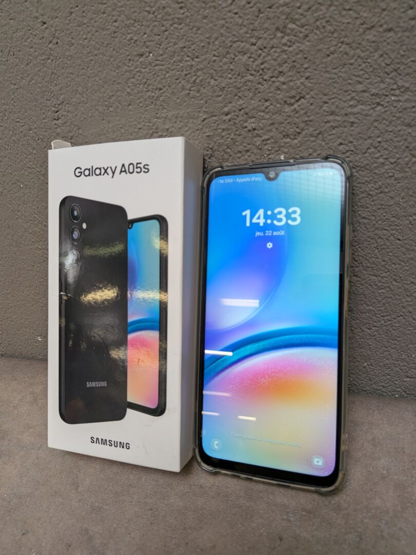 1 téléphone portable SAMSUNG, A05S avec coque de protection et cable USB