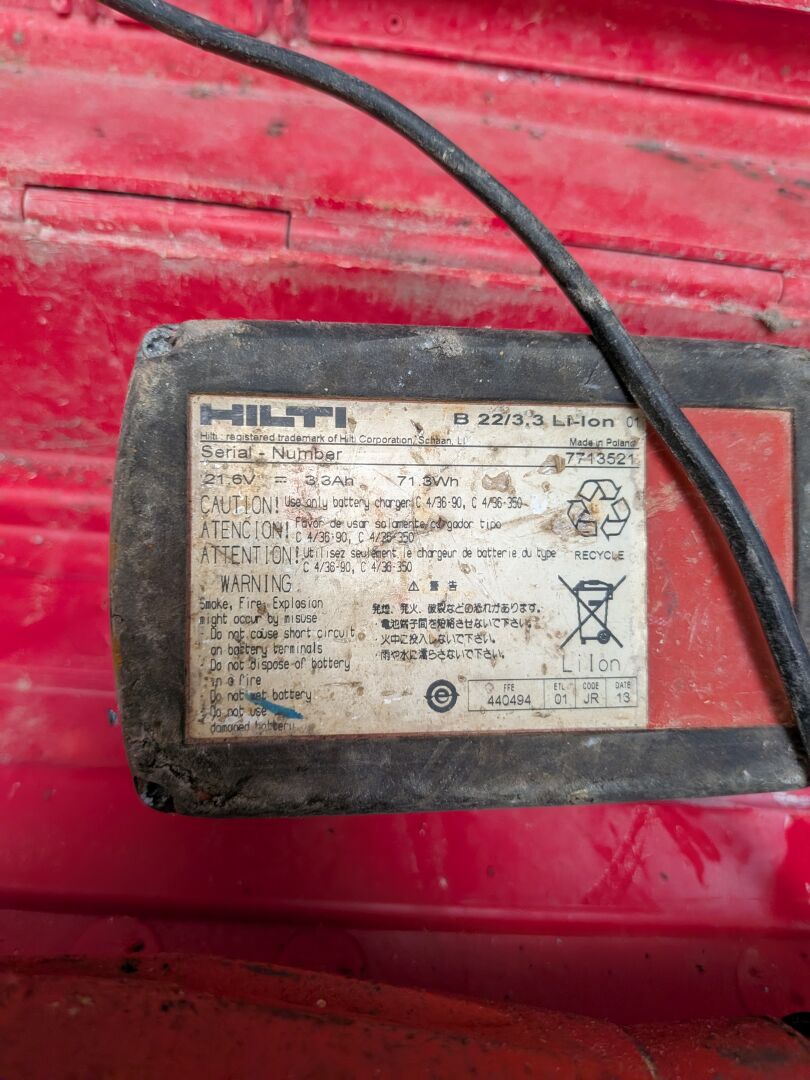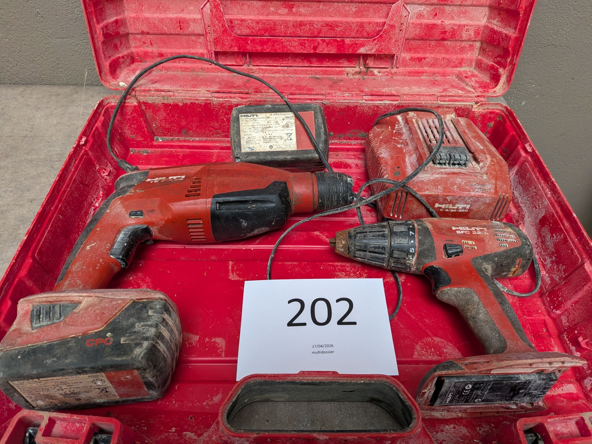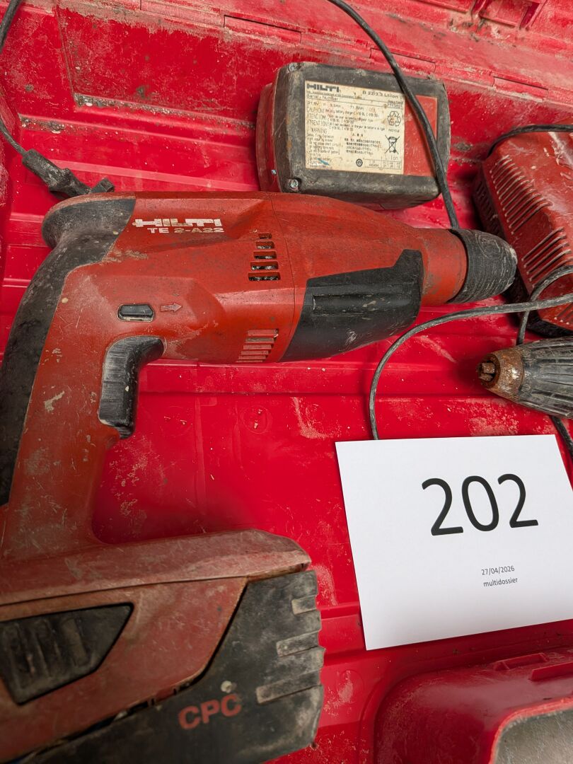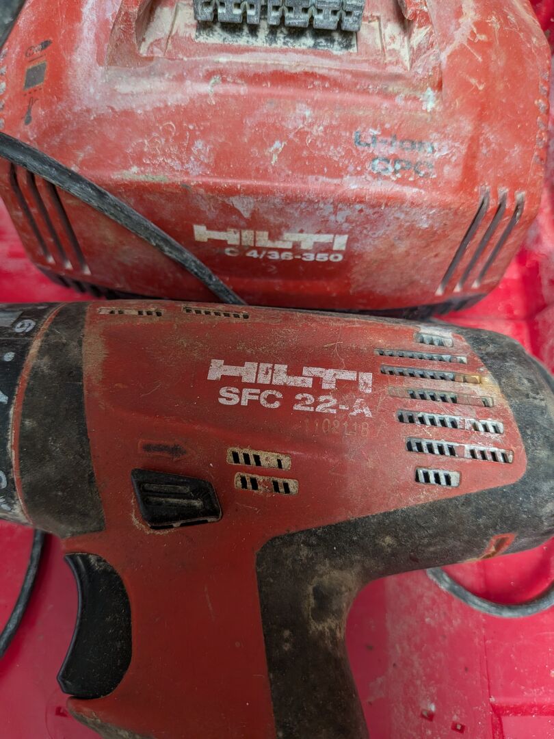 1 lot d'outillage HILTI comprenant : 1 visseuse/perceuse autonome SFC 22-A , 1 perforateur autonome TE 2-A22 , 2 batteries B 22/3.3 li-ion, chargeur C4/36-350, 1 coffret