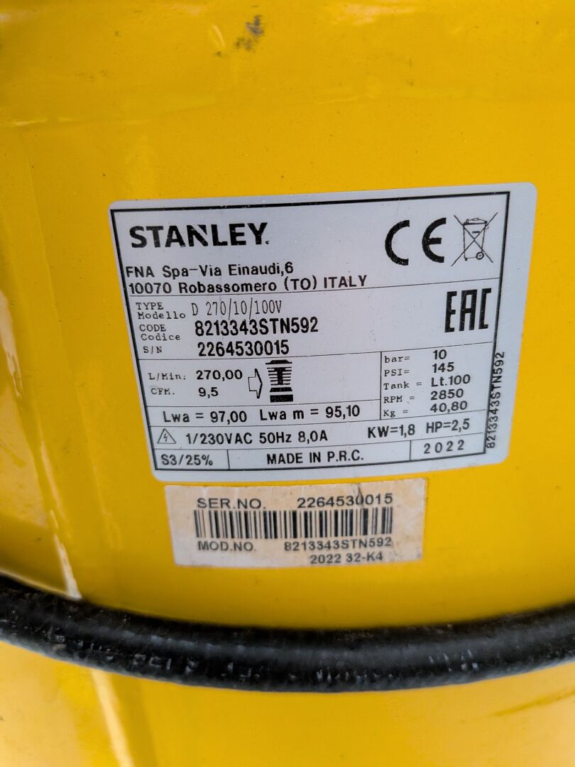 1 compresseur mobile vertical STANLEY D270 / 10/ 100 V capacité nominale 10 bars 100 L