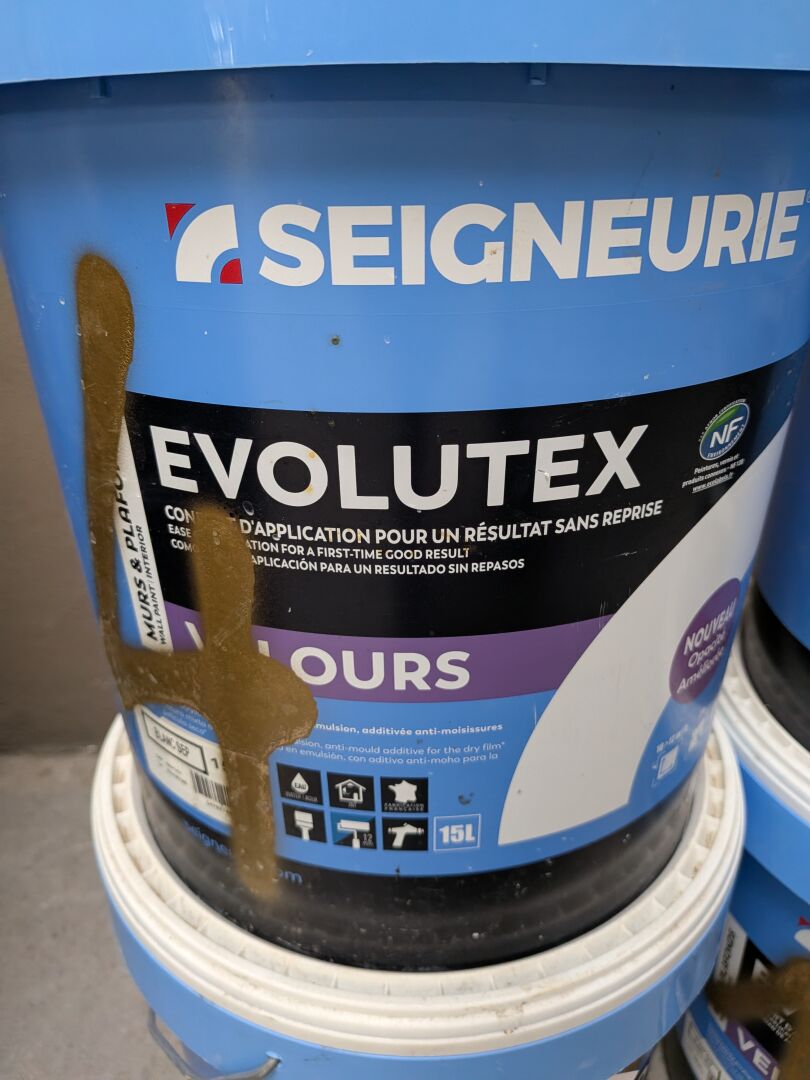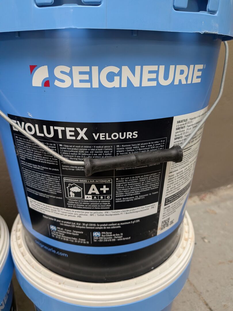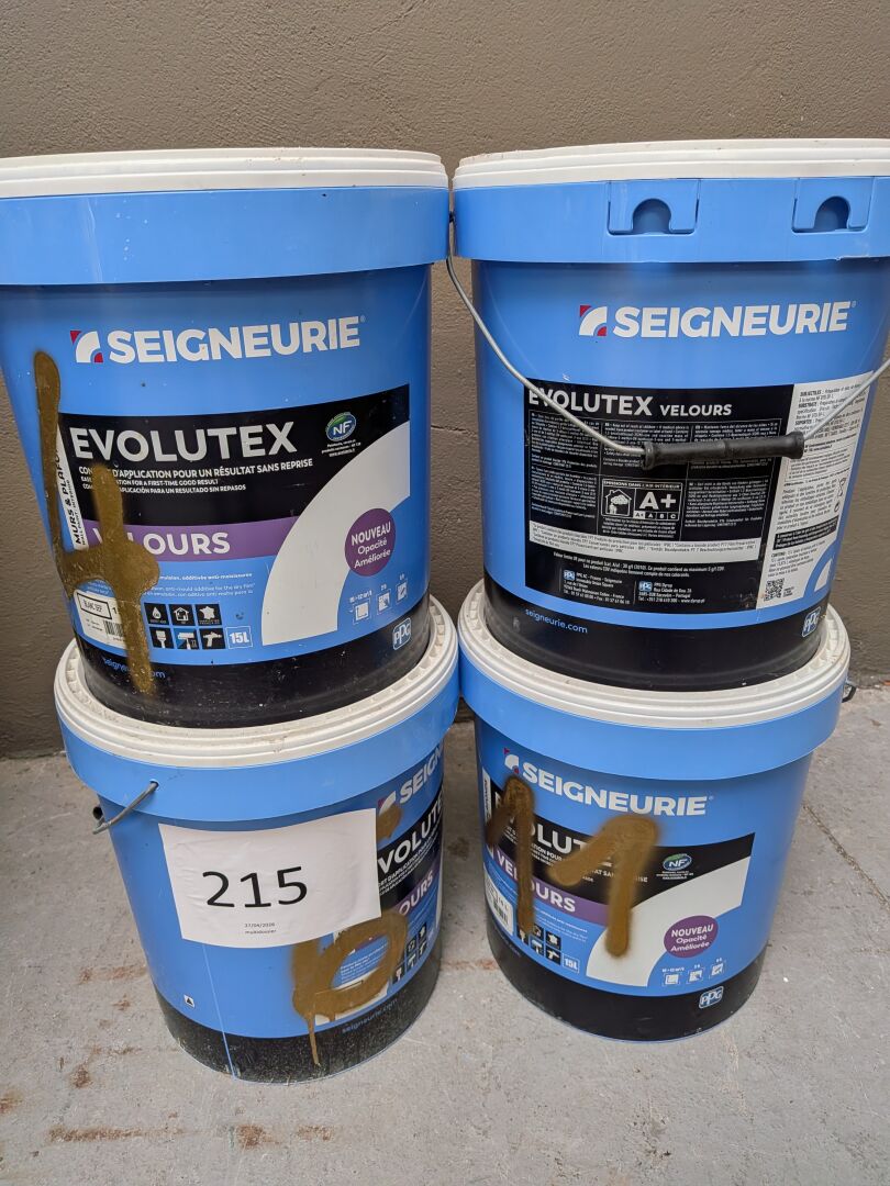 4 seaux de peinture SEIGNEURIE Evolutex Velours 15 L, couleur blanche SEP