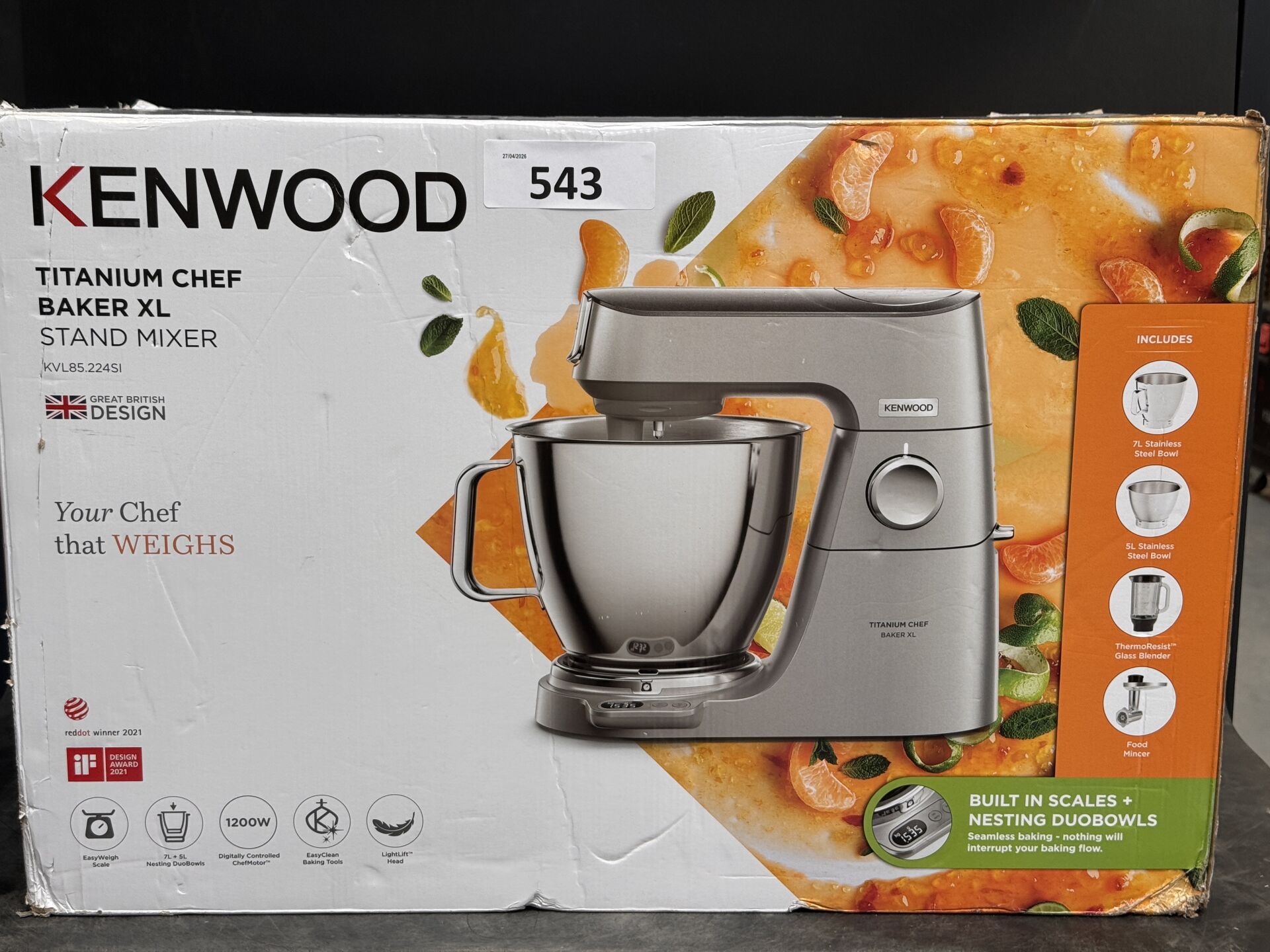 ROBOT PATISSIER KENWOOD CHEF BAKER CHEF XL KVL85,224SI (expédition sur devis) Lot issu de colis non réclamés : état de fonctionnement non garanti.