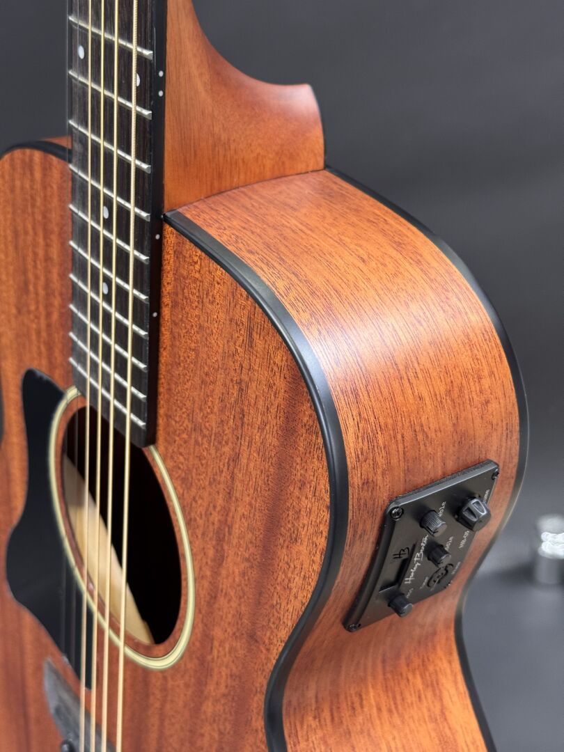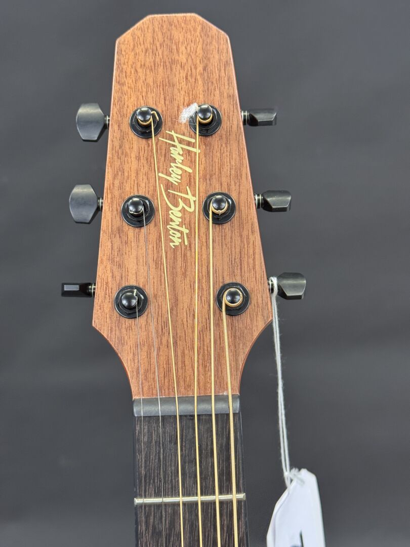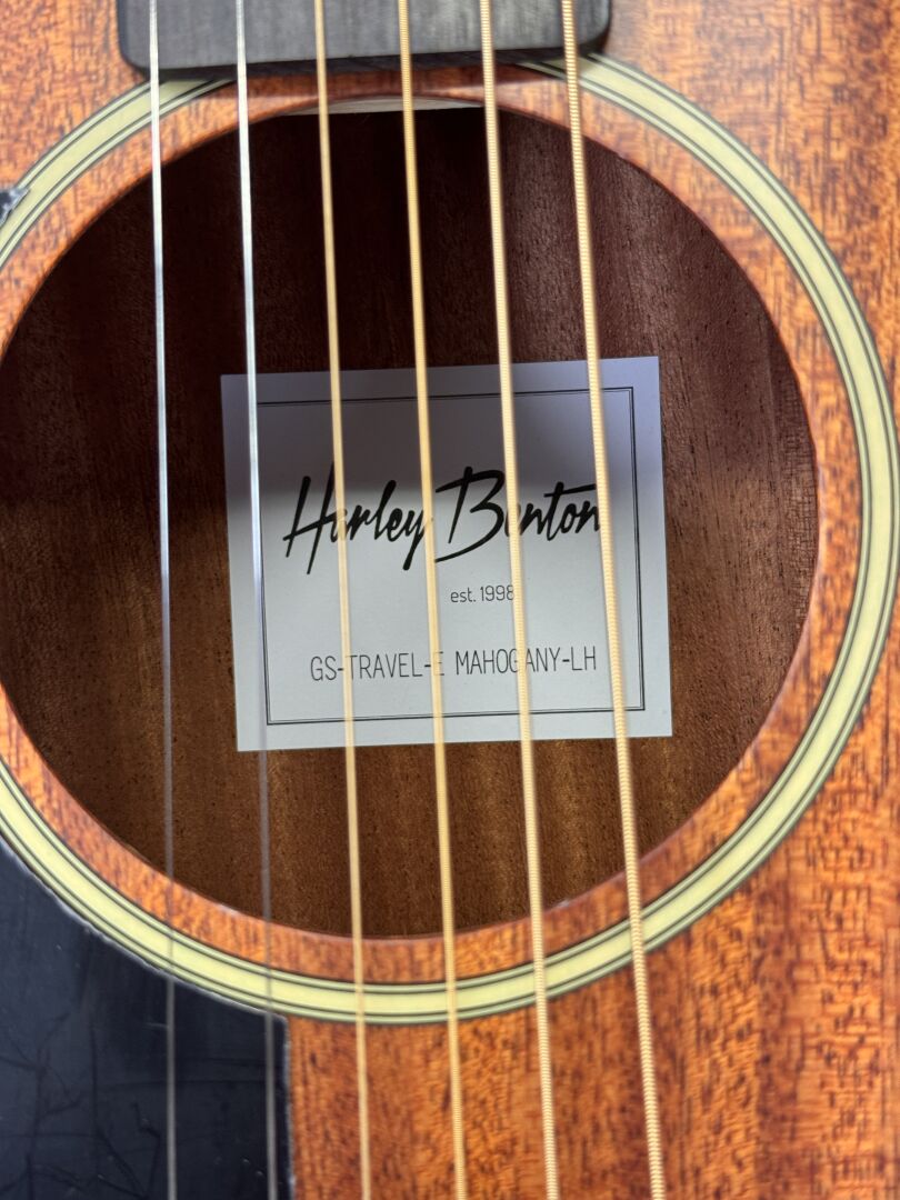 GUITARE ELECTRO-ACOUSTIQUE HARLEY BENTON GS-TRAVEL E MAHOGANY LEFT HAND AVEC HOUSSE SOUPLE DE LA MARQUE (expédition sur devis) Lot issu de colis non réclamés : état de fonctionnement non garanti.