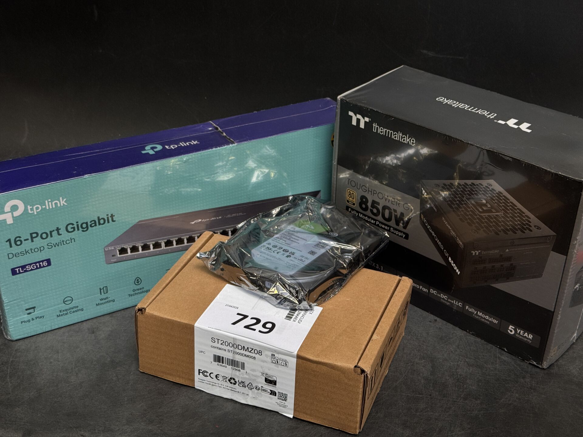 ALIMENTATION PC THERMALTAKE 850W + SWITCH TP LINK 16 PORTS TL-SG116 + DISQUE SEAGATE BARRACUDA 2TB EXPEDITION POSSIBLE (ce lot chez vous en France métropolitaine pour 28,50€) Lot issu de colis non réclamés : état de fonctionnement non garanti.