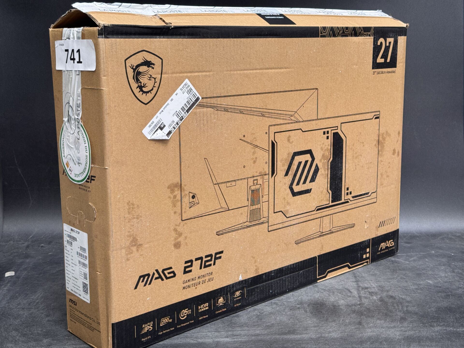 MONTEUR MSI 27" MAG 272F 4711377289542 (expédition sur devis) Lot issu de colis non réclamés : état de fonctionnement non garanti. (la première photo est une image d'illustration)
