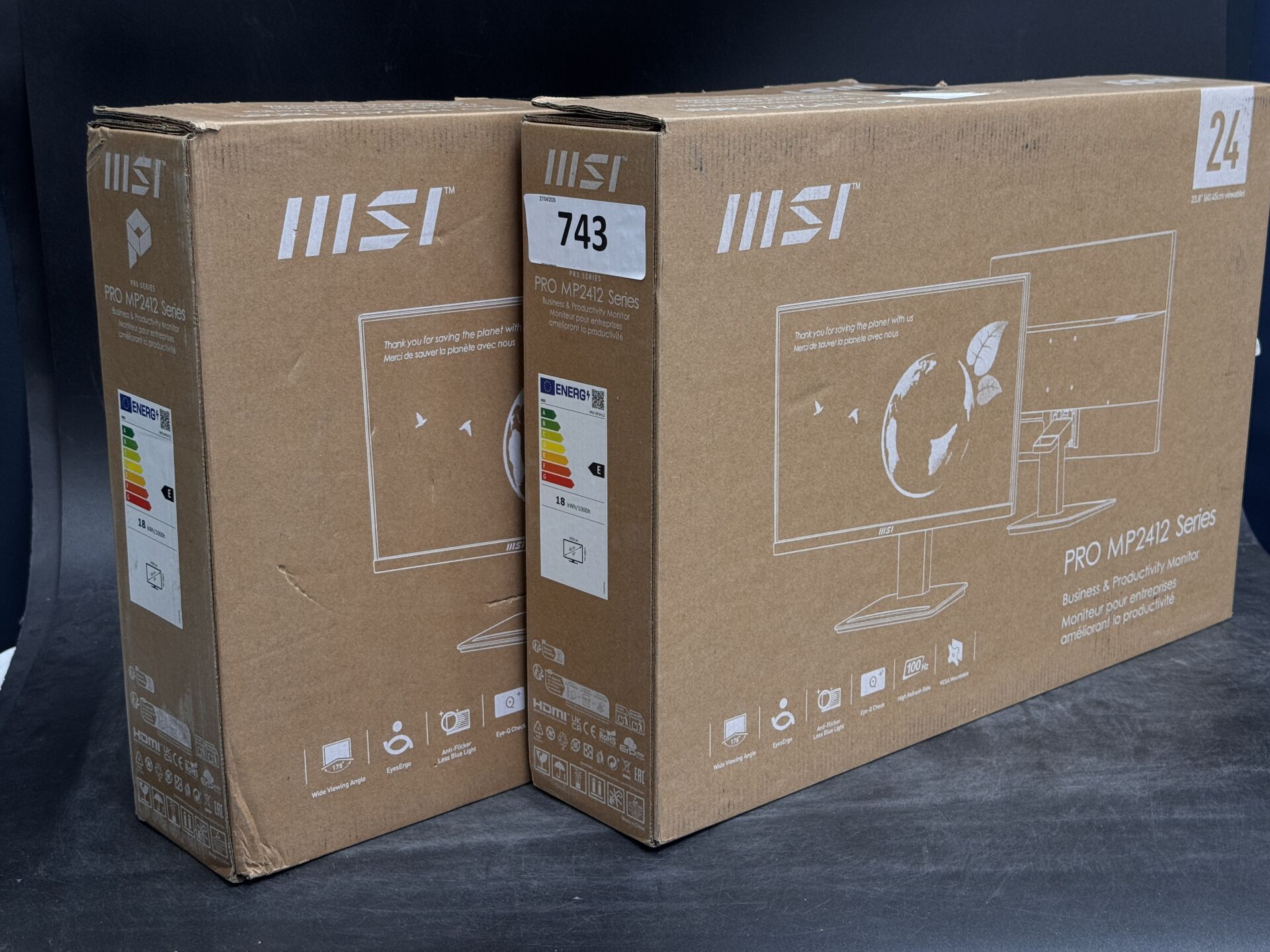 2 MONITEURS MSI 23,8" PRO MP2412 4711377087957 (expédition sur devis) Lot issu de colis non réclamés : état de fonctionnement non garanti. (la première photo est une image d'illustration)