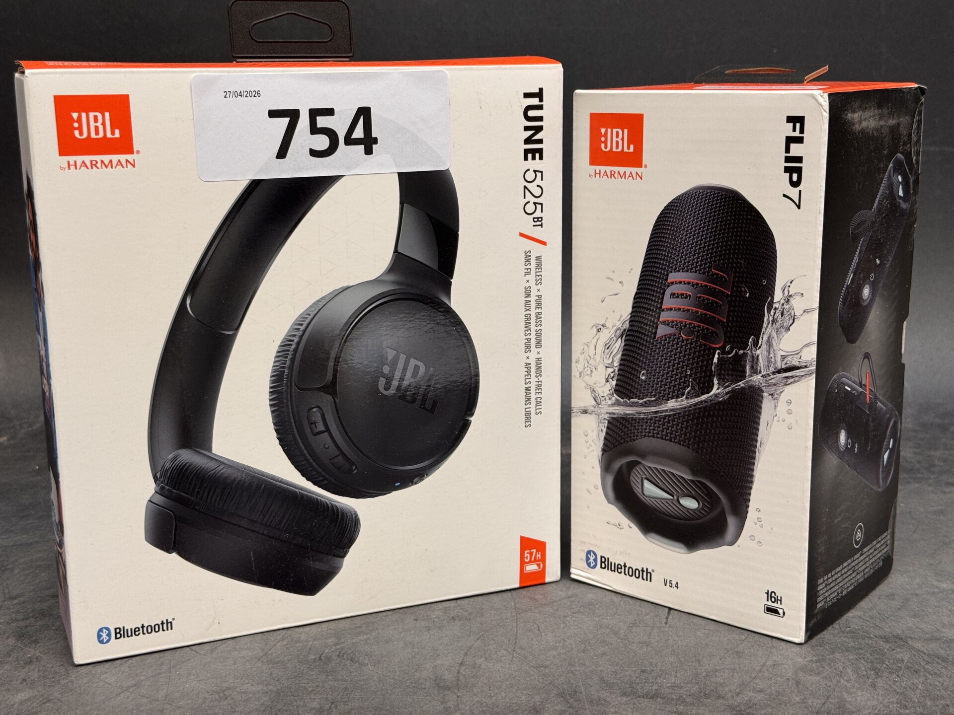 ENCEINTE & CASQUE JBL : FLIP 7 + TUNE 525 BT (avec scellés) EXPEDITION POSSIBLE (ce lot chez vous en France métropolitaine pour 28,50€) Lot issu de colis non réclamés : état de fonctionnement non garanti