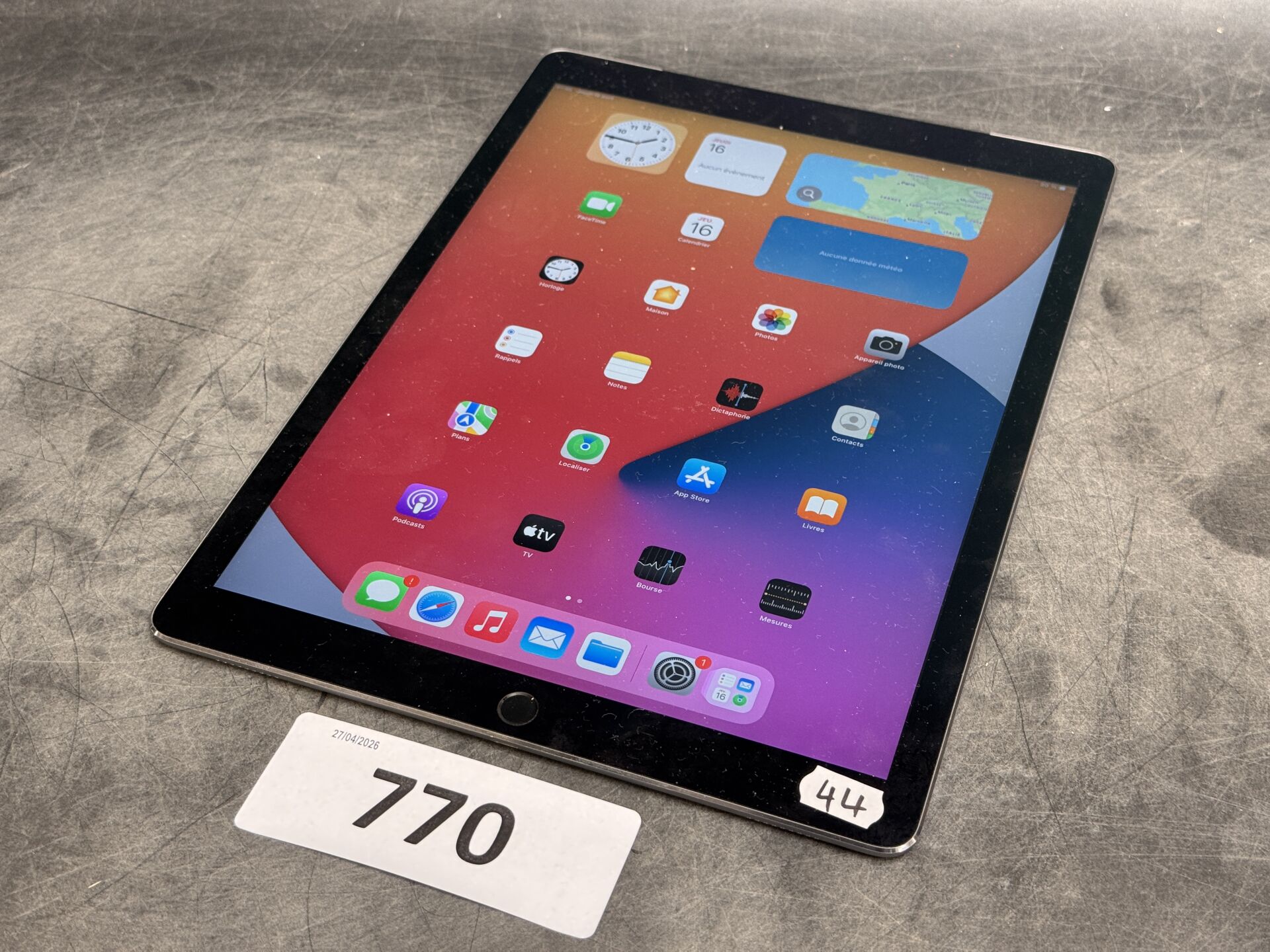 APPLE IPAD PRO 128GB GRIS SIDERAL GEN 1 SN DLXQJCGGGMW3 EXPEDITION POSSIBLE (ce lot chez vous en France métropolitaine pour 26,50€) (traces d'usage, en l'état)