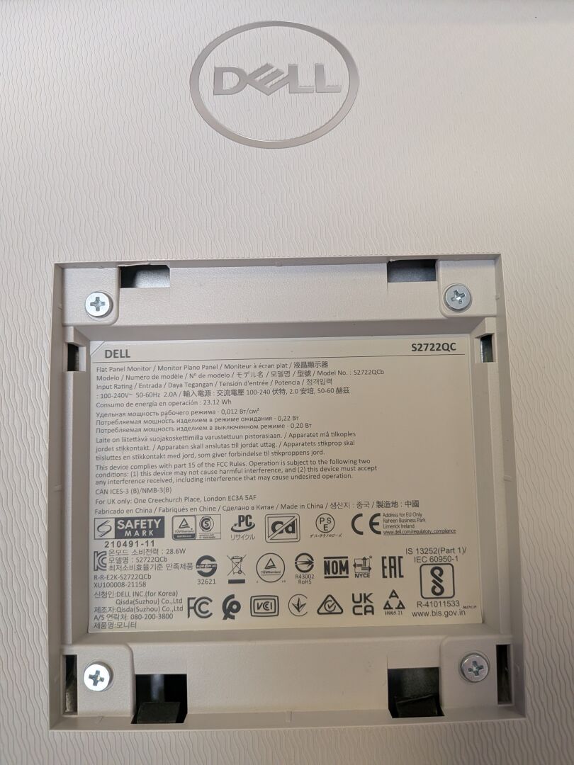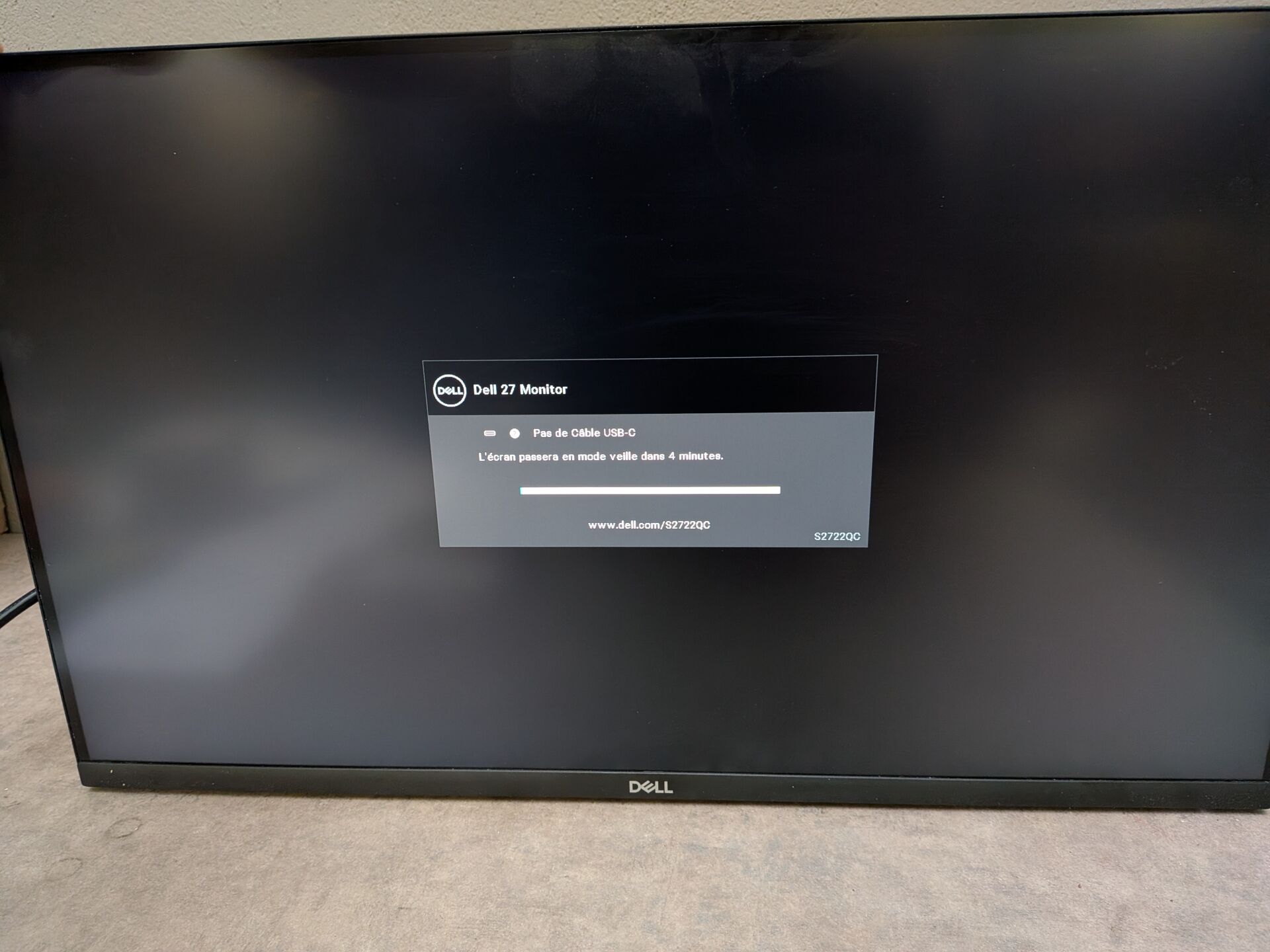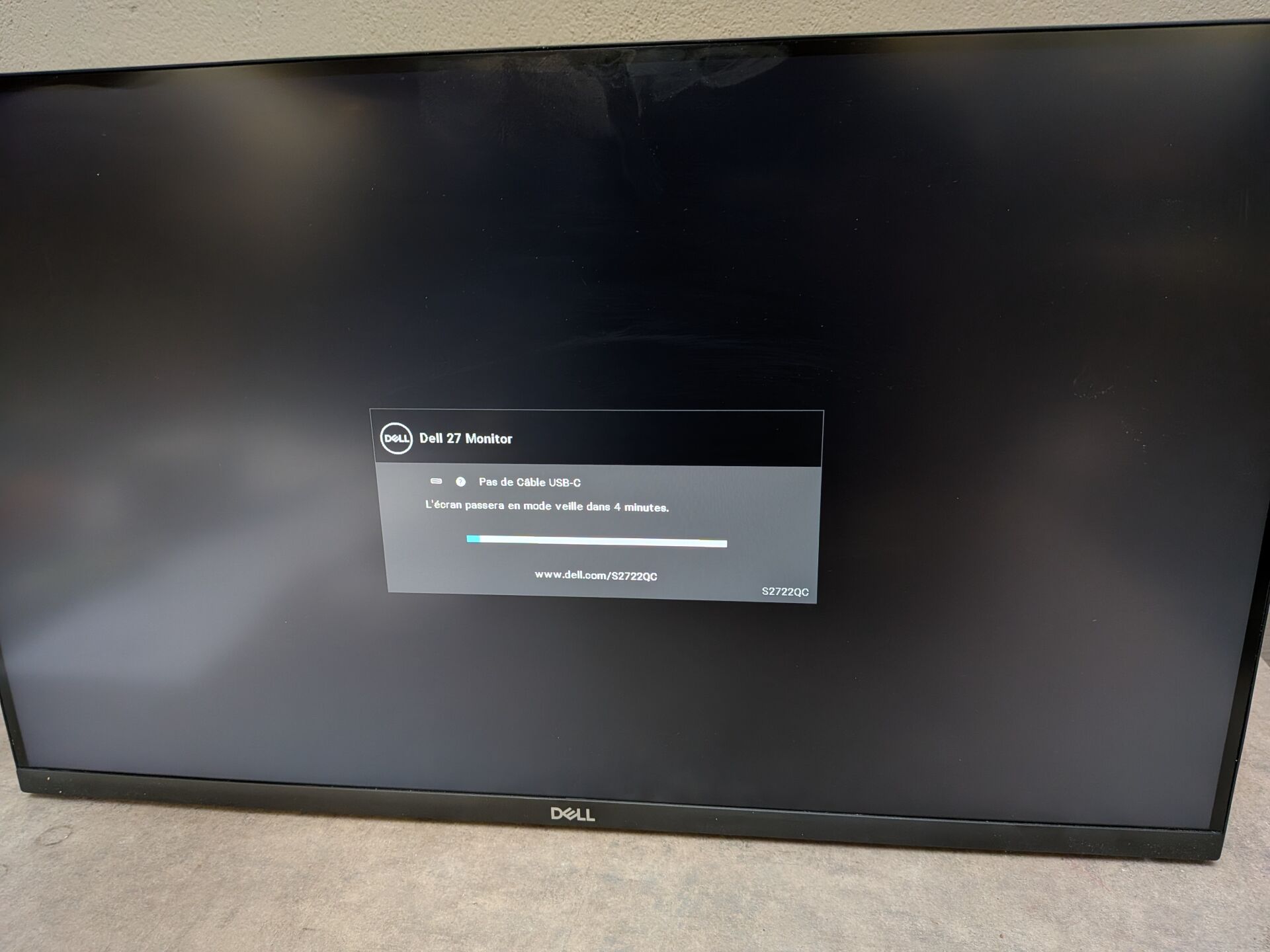 MONITEUR DELL 27 4K UHD USB-C S2722QC (test d'allumage effectué avec succès) (seconde main) (expédition sur devis) Lot issu de colis non réclamés : état de fonctionnement non garanti. (la première image est une image d'illustration)