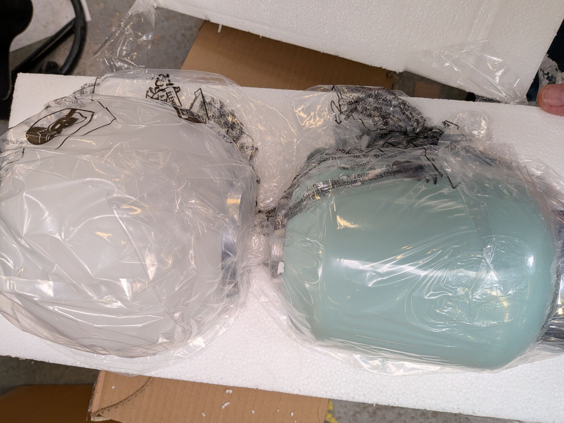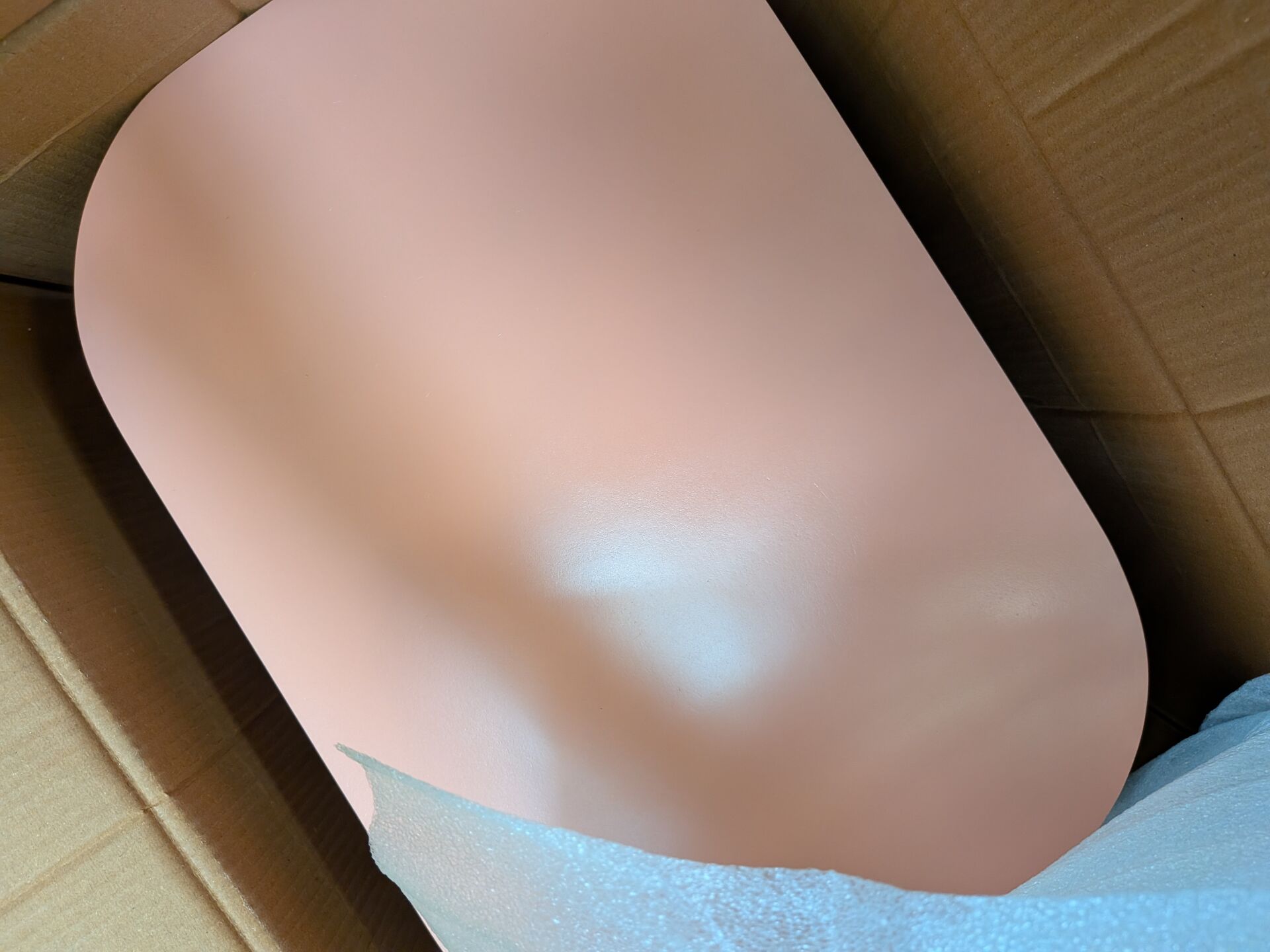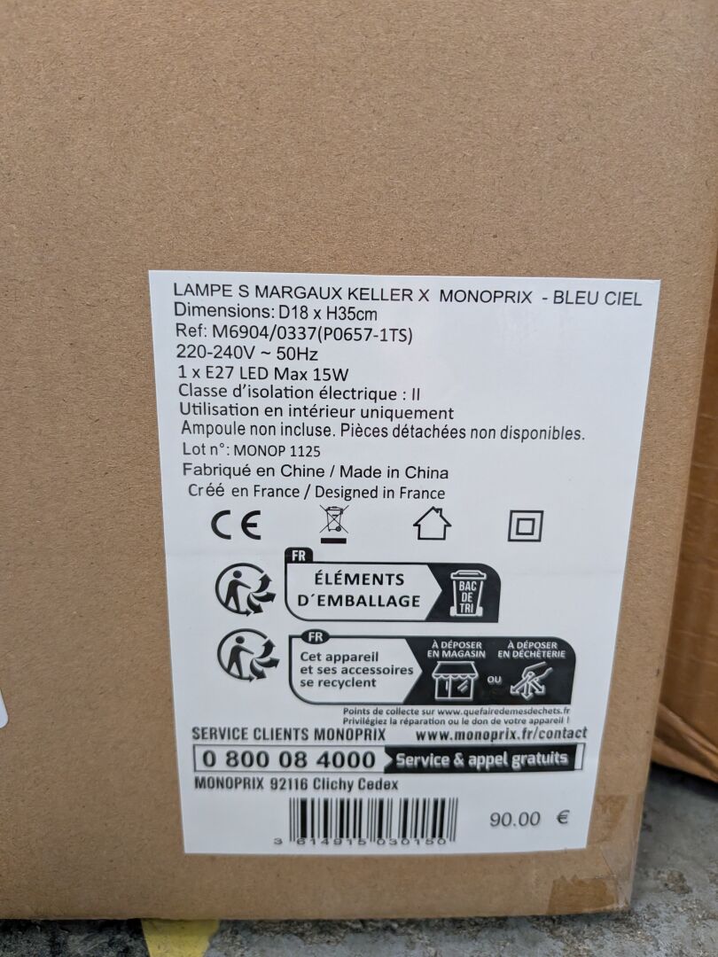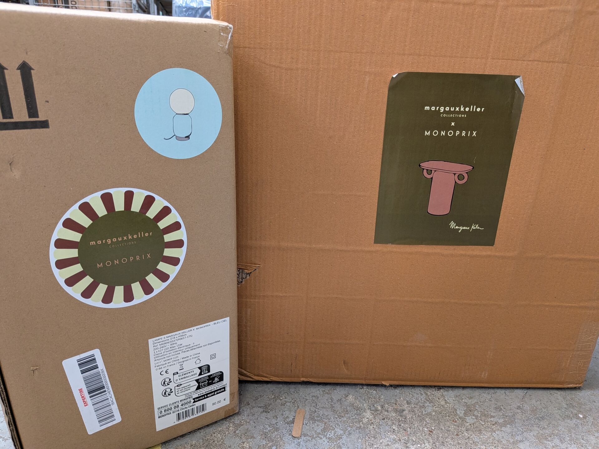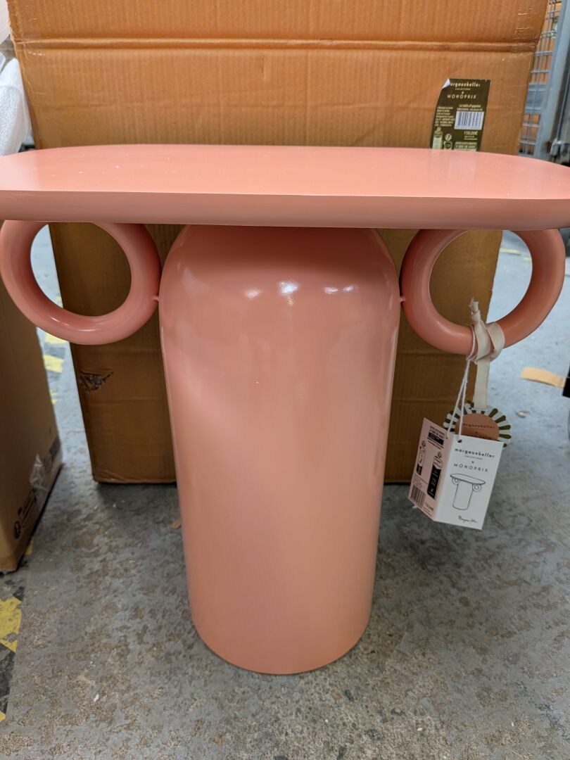 LOT MONOPRIX X MARGAUX KELLER (2 PIECES) TABLE D'APPOINT METAL ROSE CLAIR 45 x30x45cm + LAMPE BLEU CLAIR 35x18 cm (expédition sur devis) Lot issu de colis non réclamés : état de fonctionnement non garanti. (la première image est une image d'illustration)