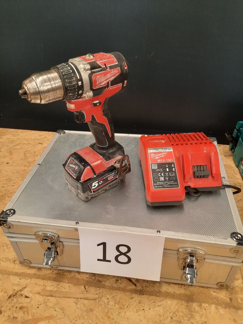 Visseuse autonome MILWAUKEE modèle M18 CBL DD 18V 1 batterie 5Ah, chargeur, malette rapportée Testée le 06 01 26