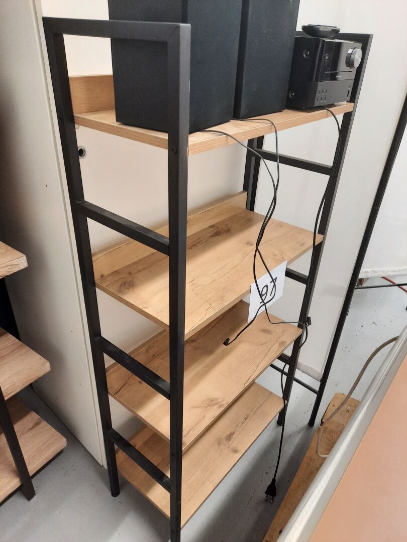 2 étagères en métal laqué noir et mélaminé façon bois 4 plateaux 100x33x140 cm et 60x28x126 cm
