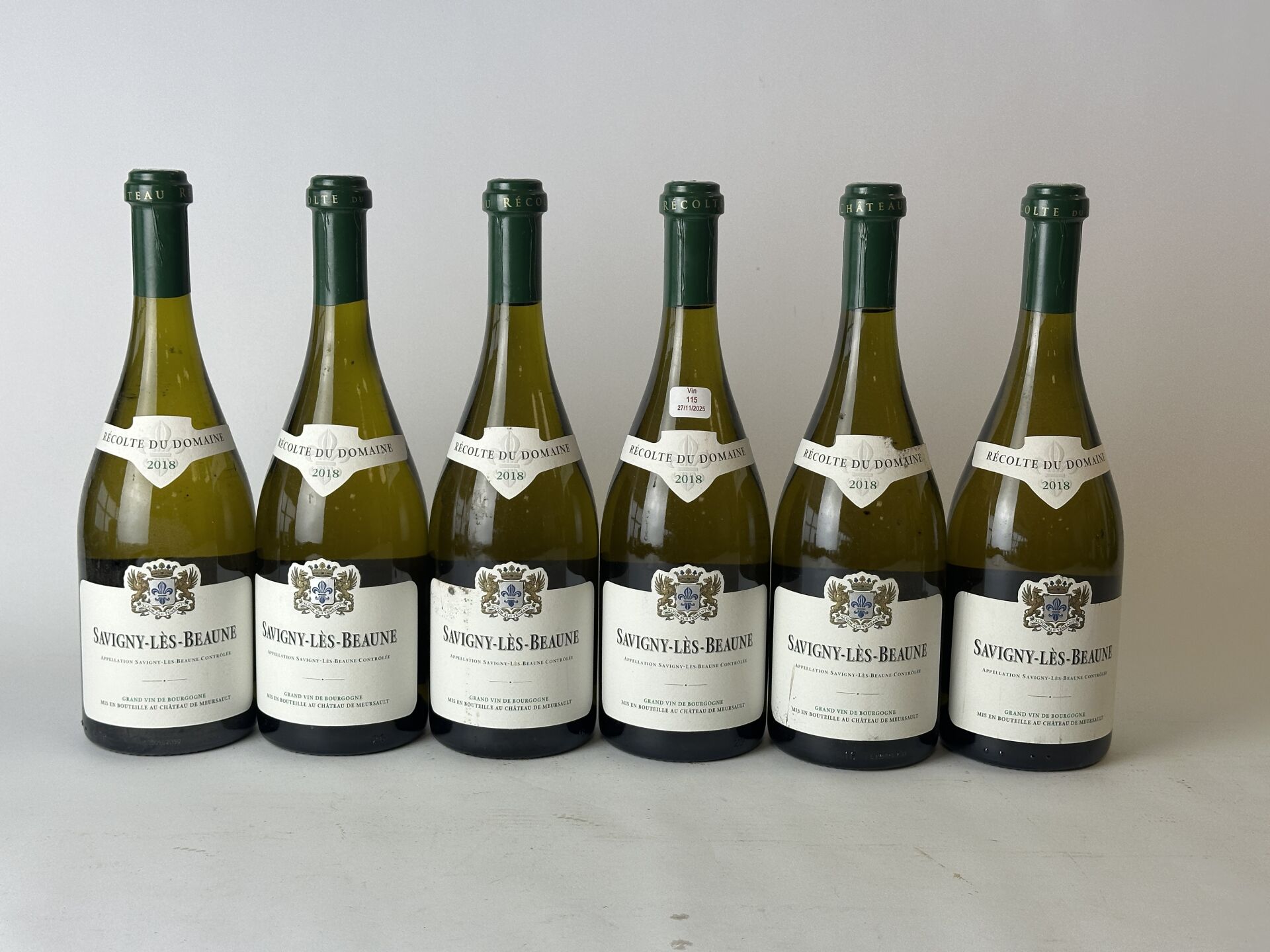 6 bouteilles de Savigny-Lès-Beaune - CHATEAU DE MEURSAULT - 2018 (quelques taches sur étiquettes).