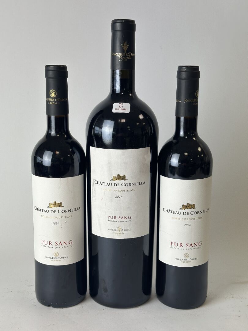 1 magnum et 2 bouteilles de Côtes du Roussillon - CHATEAU DE CORNEILLA - Sélection parcellaire Pur Sang - magnum de 2018 et 2 bouteilles de 2020.