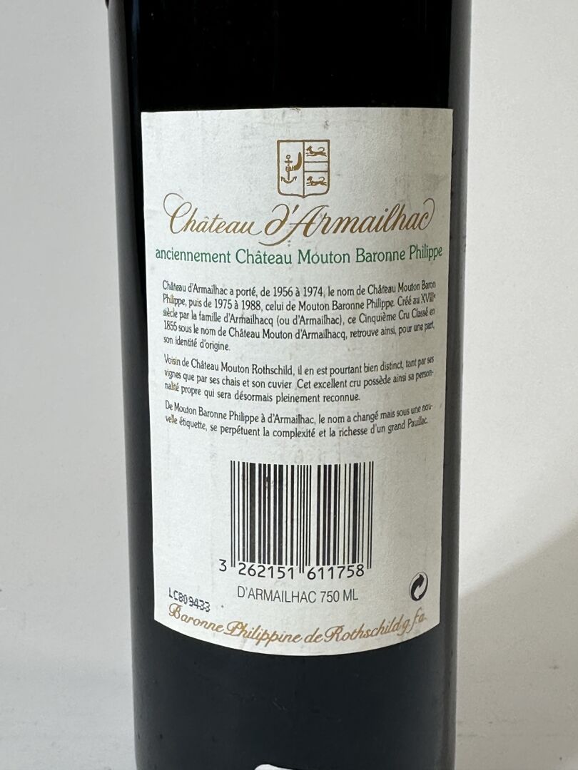 Château d'ARMAILHAC - Pauillac - GCC - 2001 (étiquette légèrement abîmée avec quelques manques).