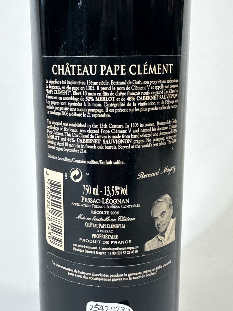 Château PAPE CLEMENT - Pessac-Léognan - Grand cru classé de Graves - 2006 (micro déchirure à l'étiquette).