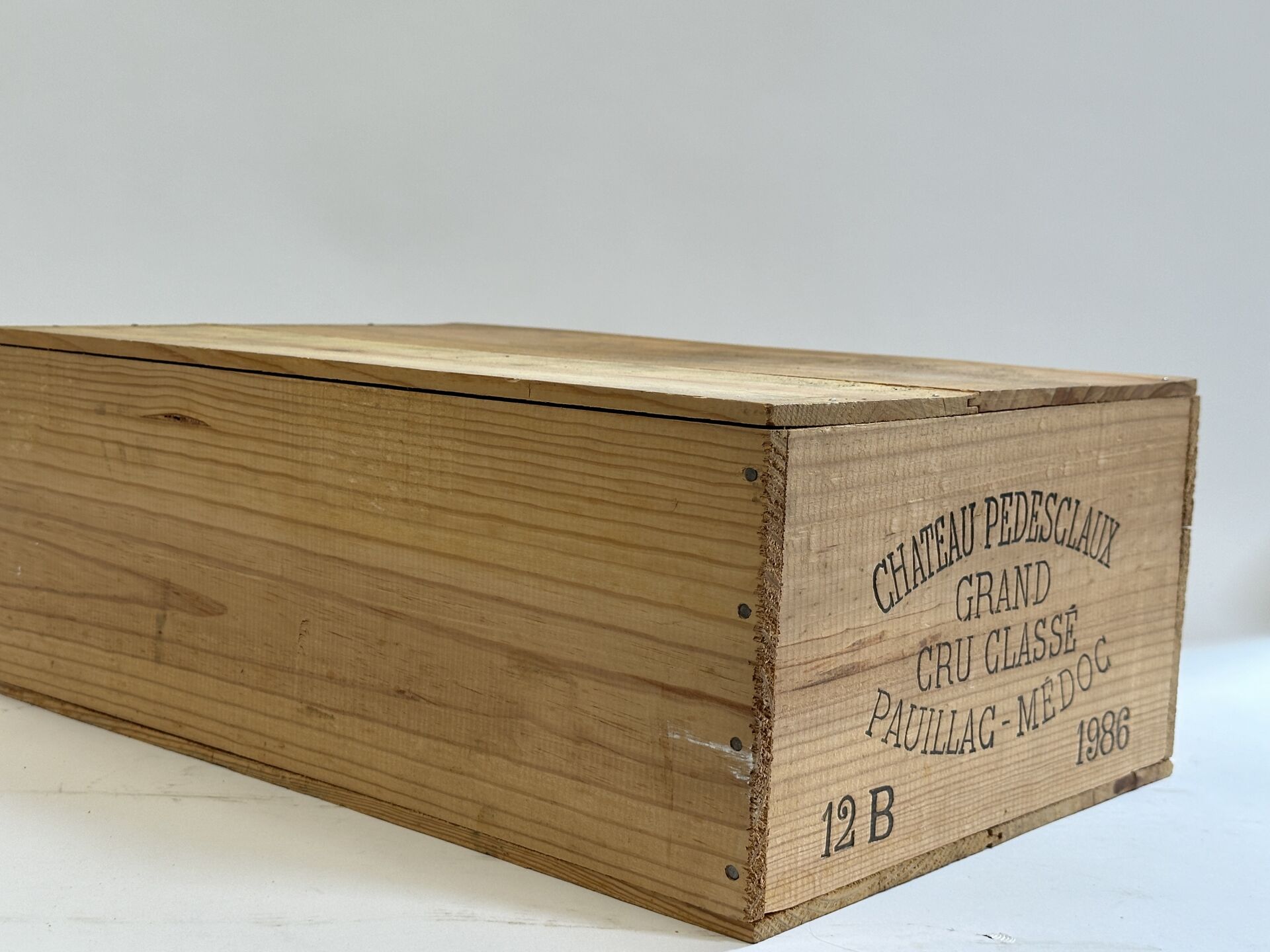 Douze bouteilles Château PEDESCLAUX - Pauillac Médoc Grand cru classé - 1986 - Caisse bois fermée.