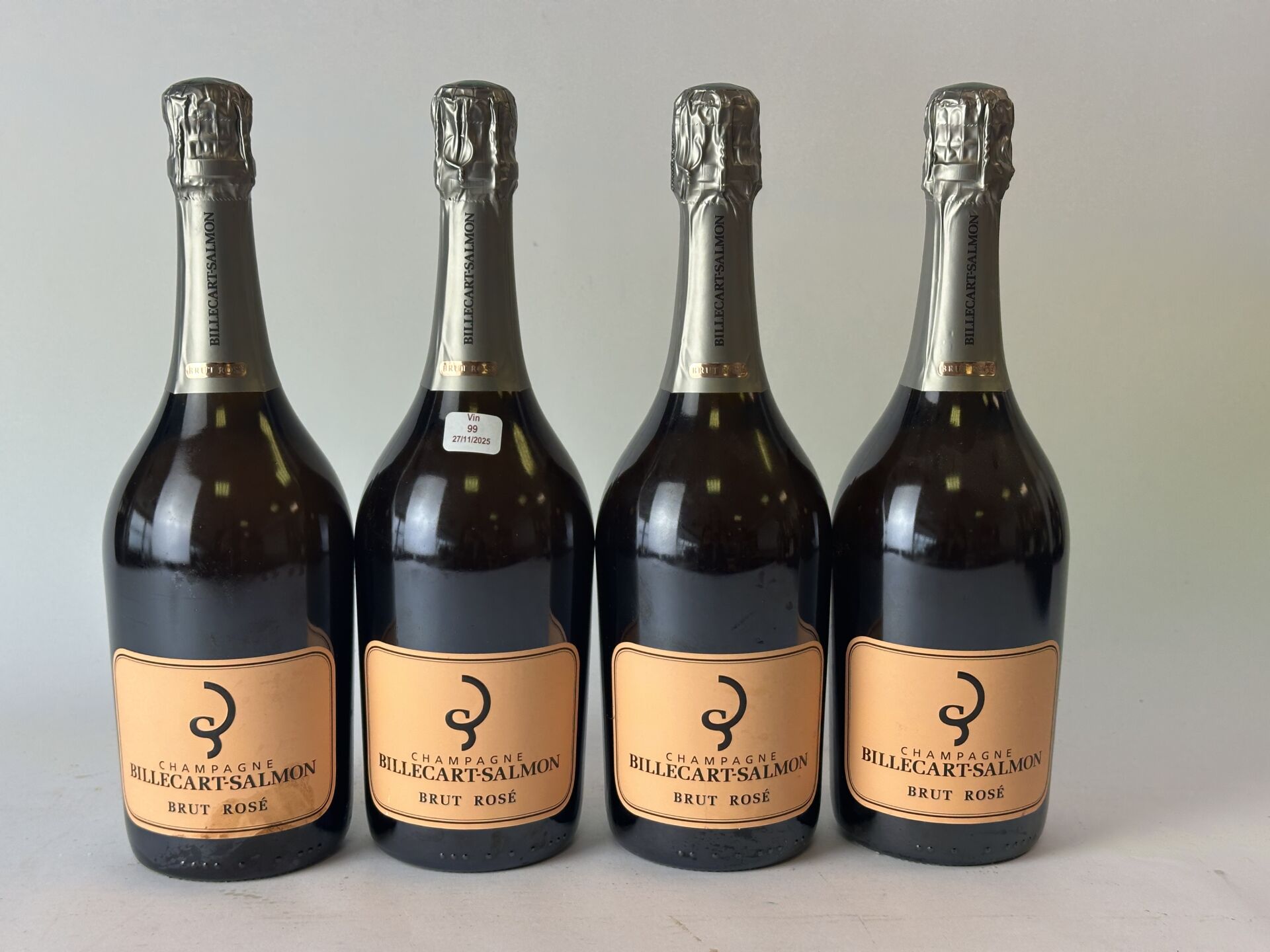 4 bouteilles de Champagne BILLECART-SALMON - Brut rosé (une étiquette tachée).