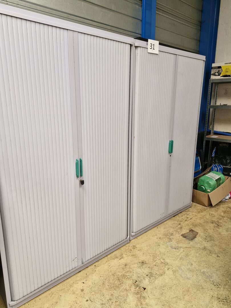 4 caissons différents modèles 1 petite armoire mi-hauteur métal à rideaux coulissants 1 grand caisson mobile métal 1 tiroir 2 armoires métal gris à rideaux coulissants 120 x 45 x 200 cm 3 étagères cornières galva 4 ou 5 niveaux 90 X 40 X 180 cm 4 étagères mi-hauteur galva 3 niveaux 90 x 40 x 90 cm