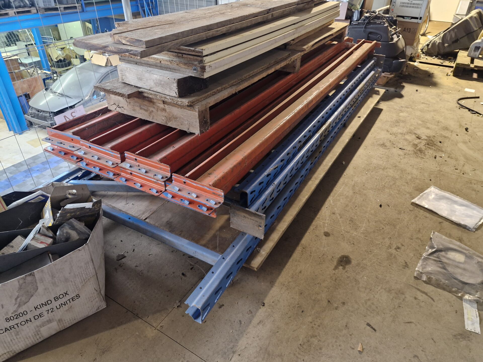 1 rack démonté comprenant 4 échelles largeur 105 cm et 19 lisses 270 cm 1 étagère métal