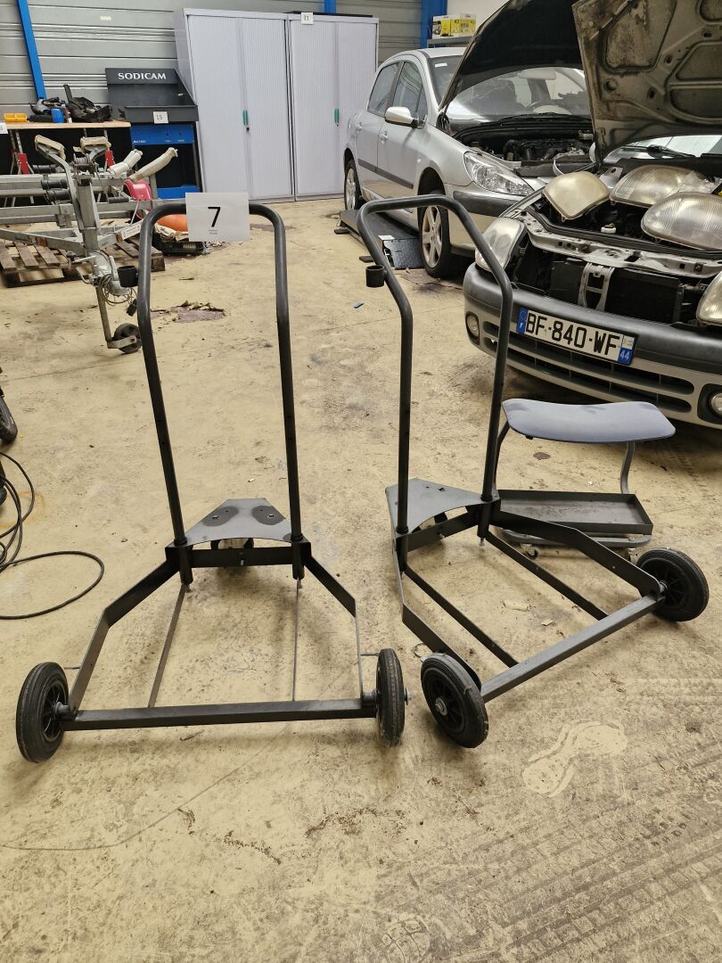 2 chariots porte fût 220 L , 1 tabouret d'atelier mobile