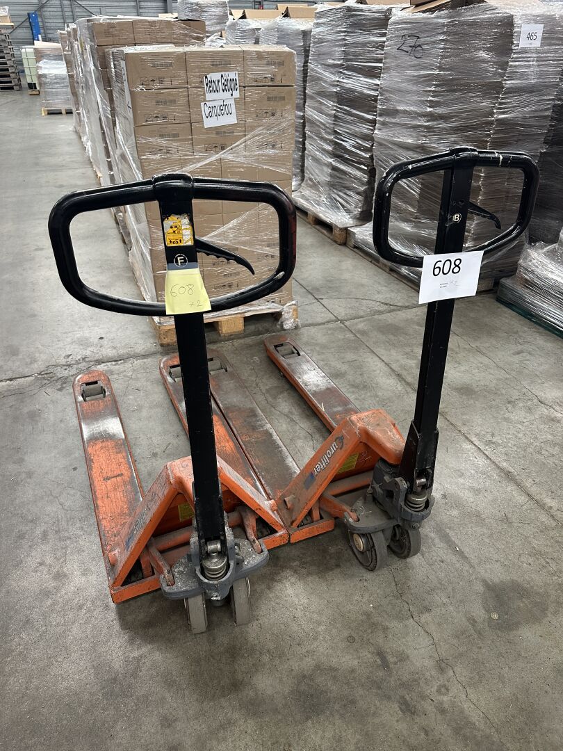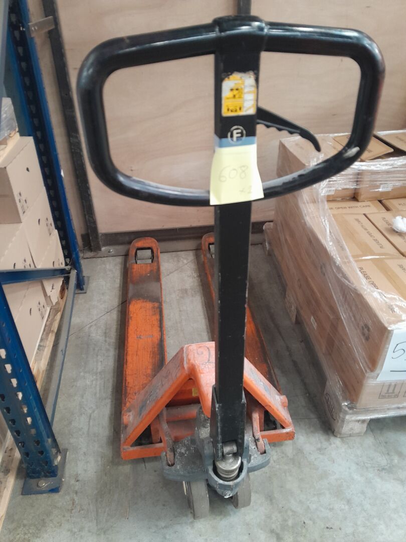 2 transpalettes métal orange EUROLIFTER 2.5 T (HALL LOGISTIQUE) (frais de mise à disposition 10 € TTC)