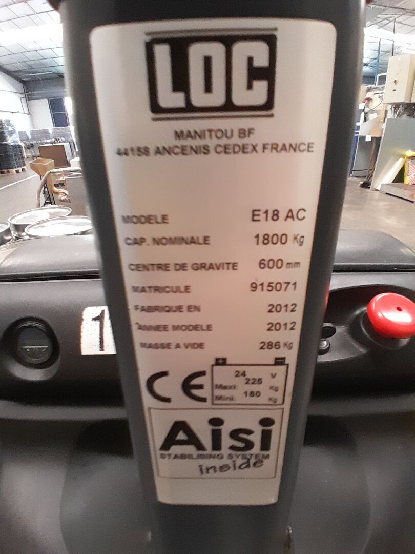 1 transpalette électrique LOC E18 AC No 915071 de 2012 (14) (frais de mise à disposition 10 € TTC)