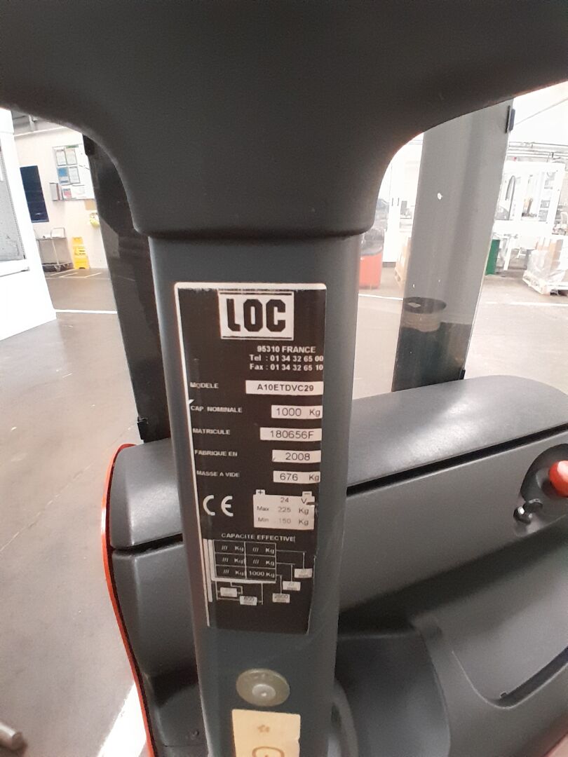 1 gerbeur électrique LOC A10 AC No 180656F capacité nominale 1000 kg, de 2008 (HALL LOGISTIQUE) (frais de mise à disposition 10 € TTC)