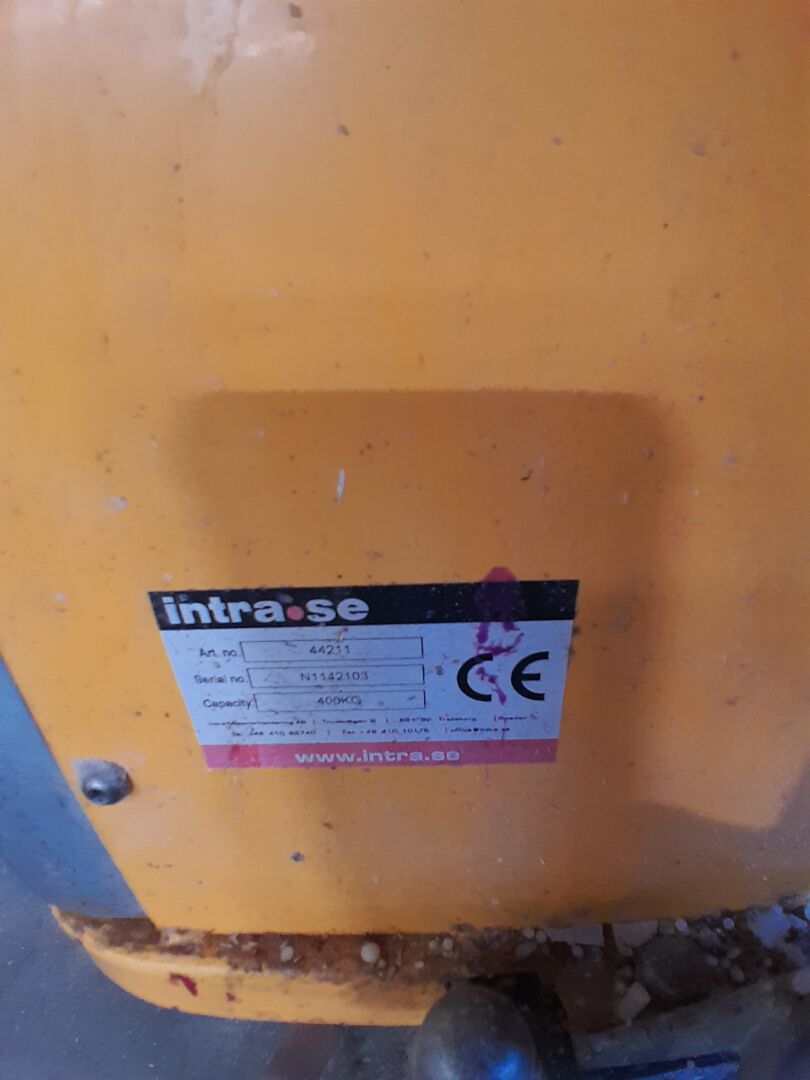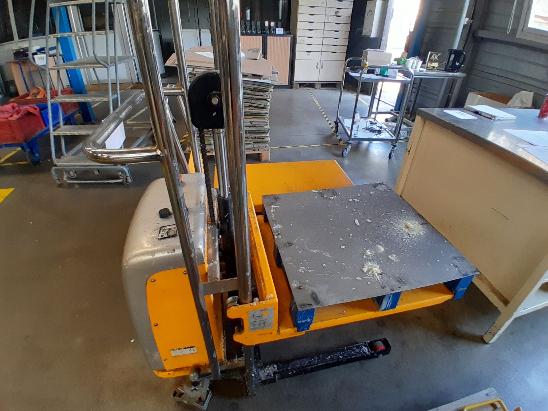 1 plateforme élévatrice électrique INTRA.SE modèle 44211, capacité 400 kg, plage de course 85 à 1500 mm, plateau 60 x 60 cm (HALL LOGISTIQUE) (frais de mise à disposition 10 € TTC)