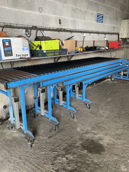 1 convoyeur mobile à rouleaux télescopique comportant : 3 modules de 345 cm et 1 de 300 cm sur une longueur totale de 13 m , largeur rouleaux 70 cm (frais de mise à disposition 10 € TTC)