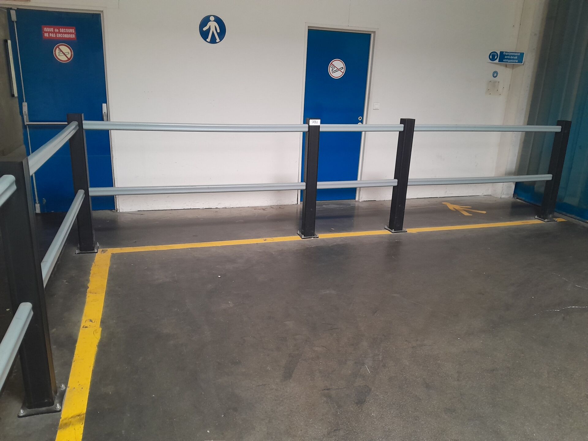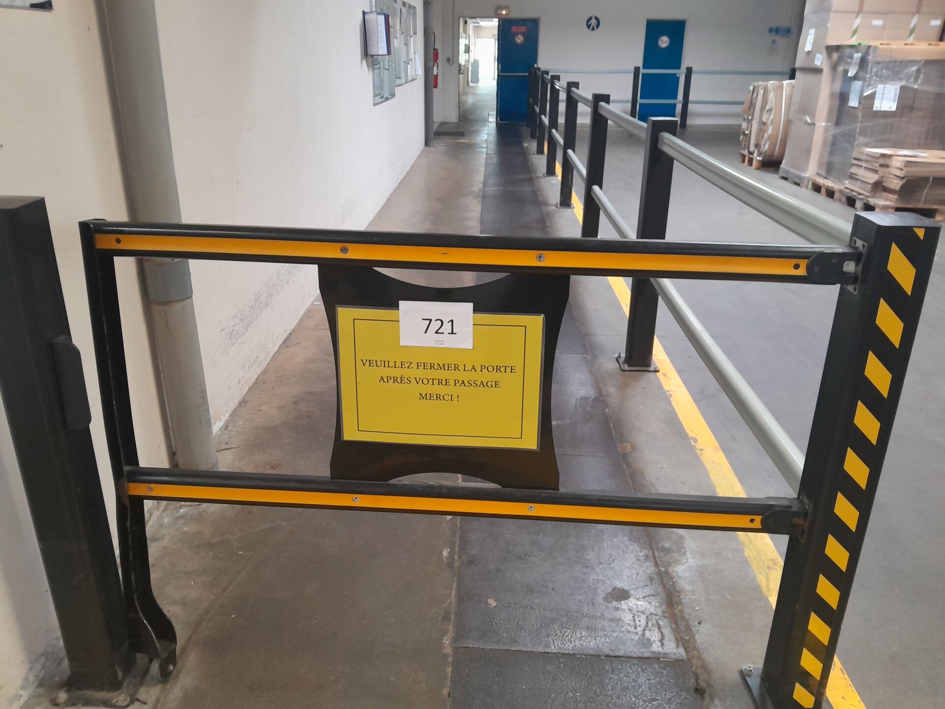 1 lot de barrières de sécurité BOPLAN PVC composé de 11 modules de 1.50 m , 9 modules de 2 m, 1 module de 0.88 m, le tout d'une hauteur de 1.15 m (1 ouverture à roulettes) (frais de mise à disposition 10 € TTC)