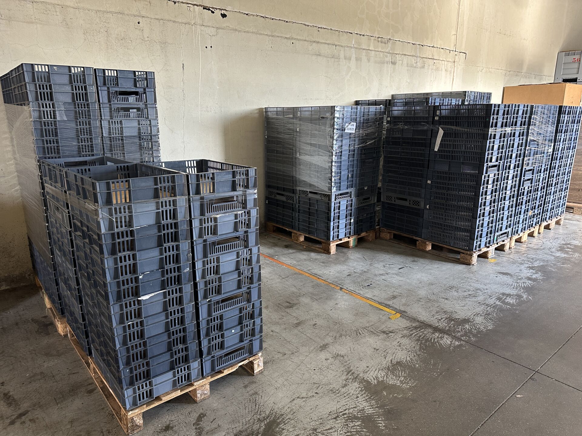 9 palettes de caisses plastique grises 40 x 60 cm + 6 palettes de caisses PVC blanc 40x60x10cm (frais de mise à disposition 10 € TTC)