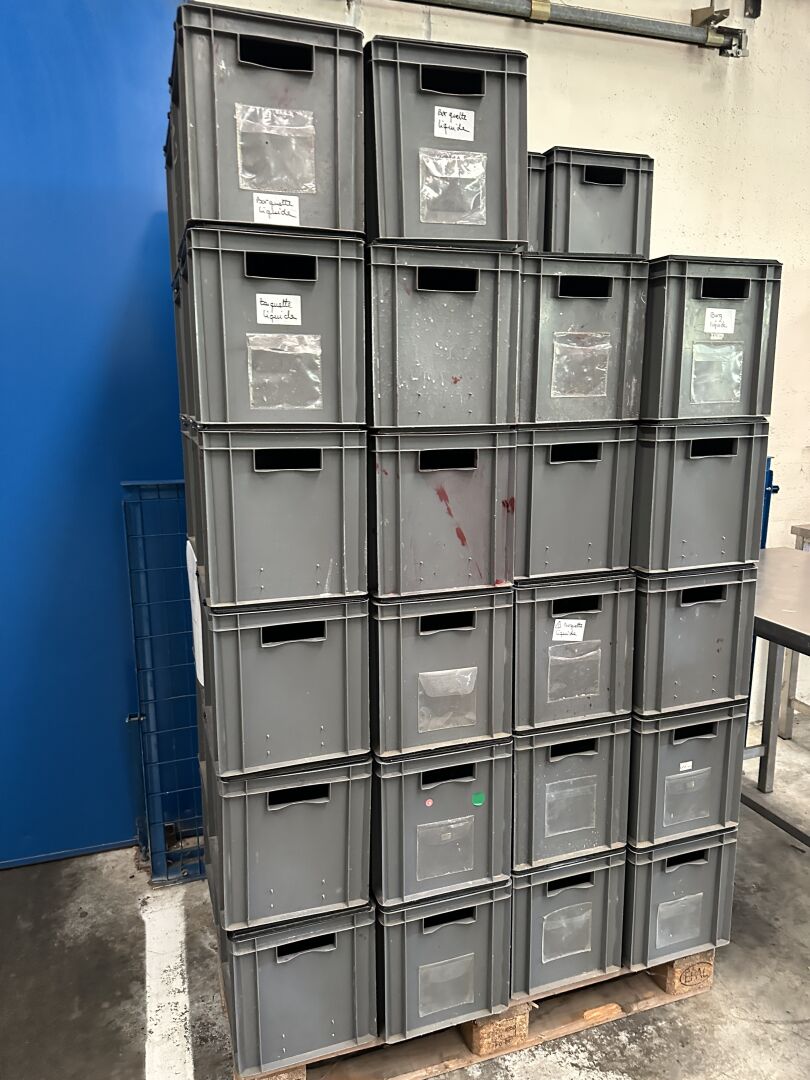 46 caisses plastique grises ou noires 20 x 30 cm avec couvercles (HALL 5) (frais de mise à disposition 10 € TTC)