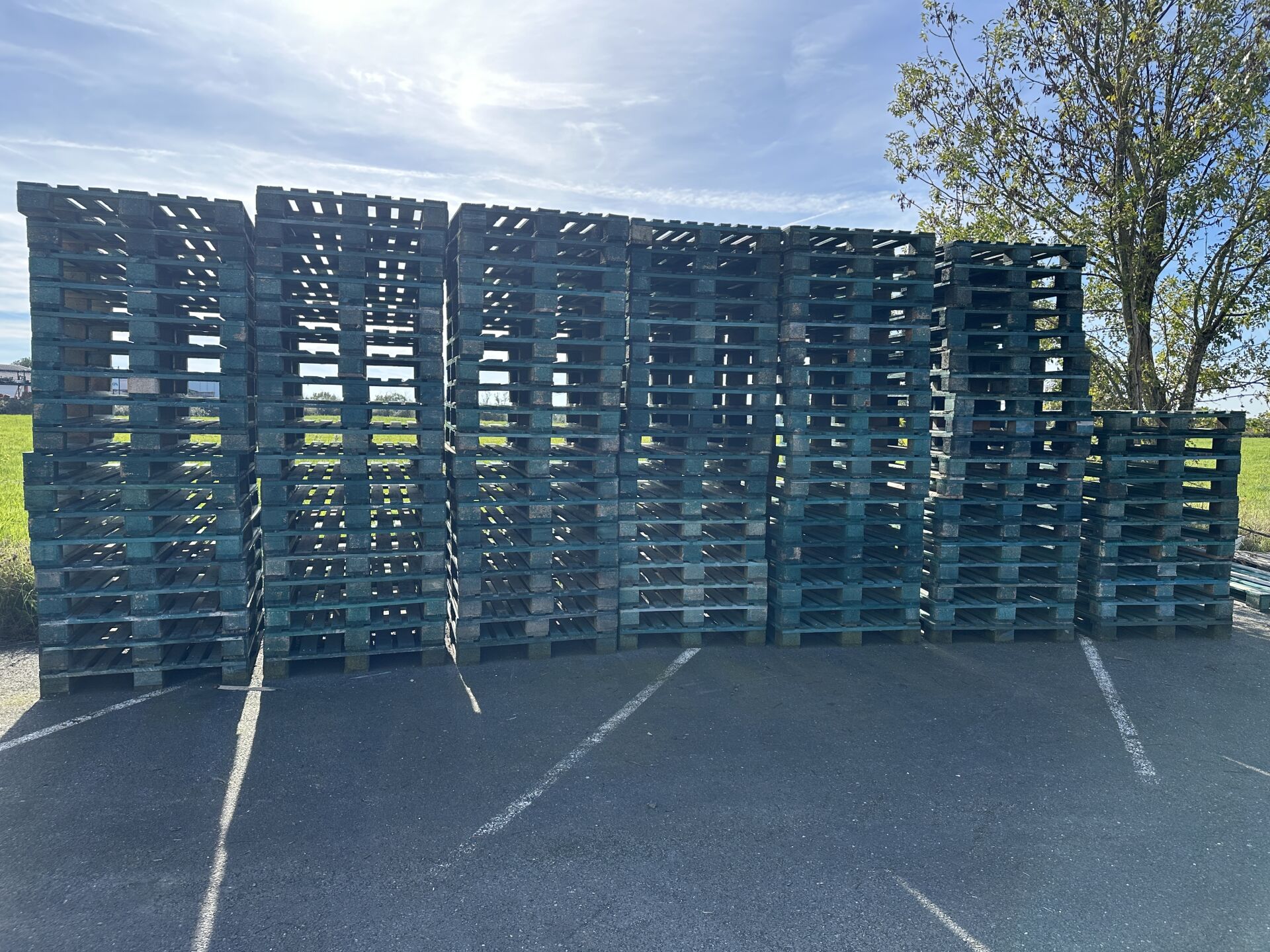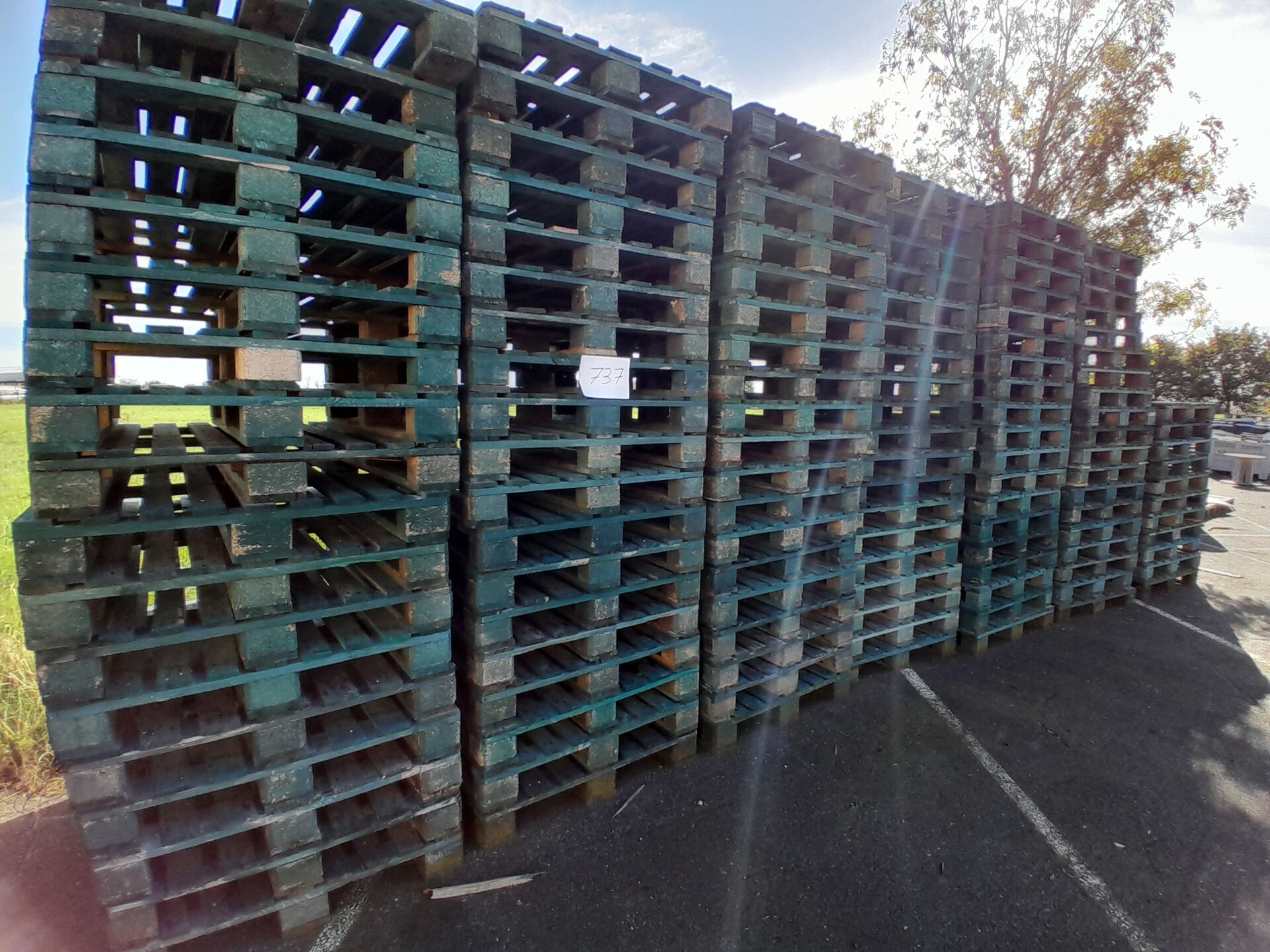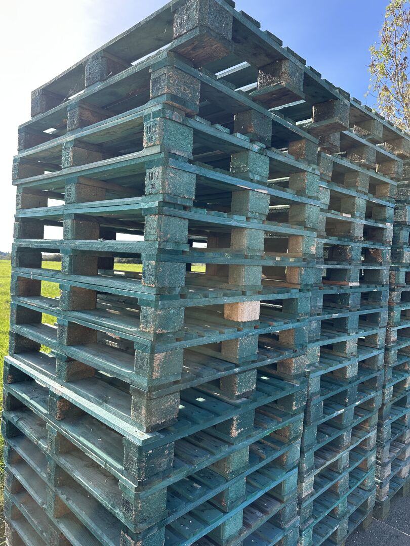 1 lot d'environ 118 palettes bois vertes 100x120cm (frais de mise à disposition 10 € TTC)