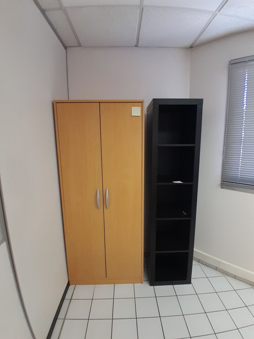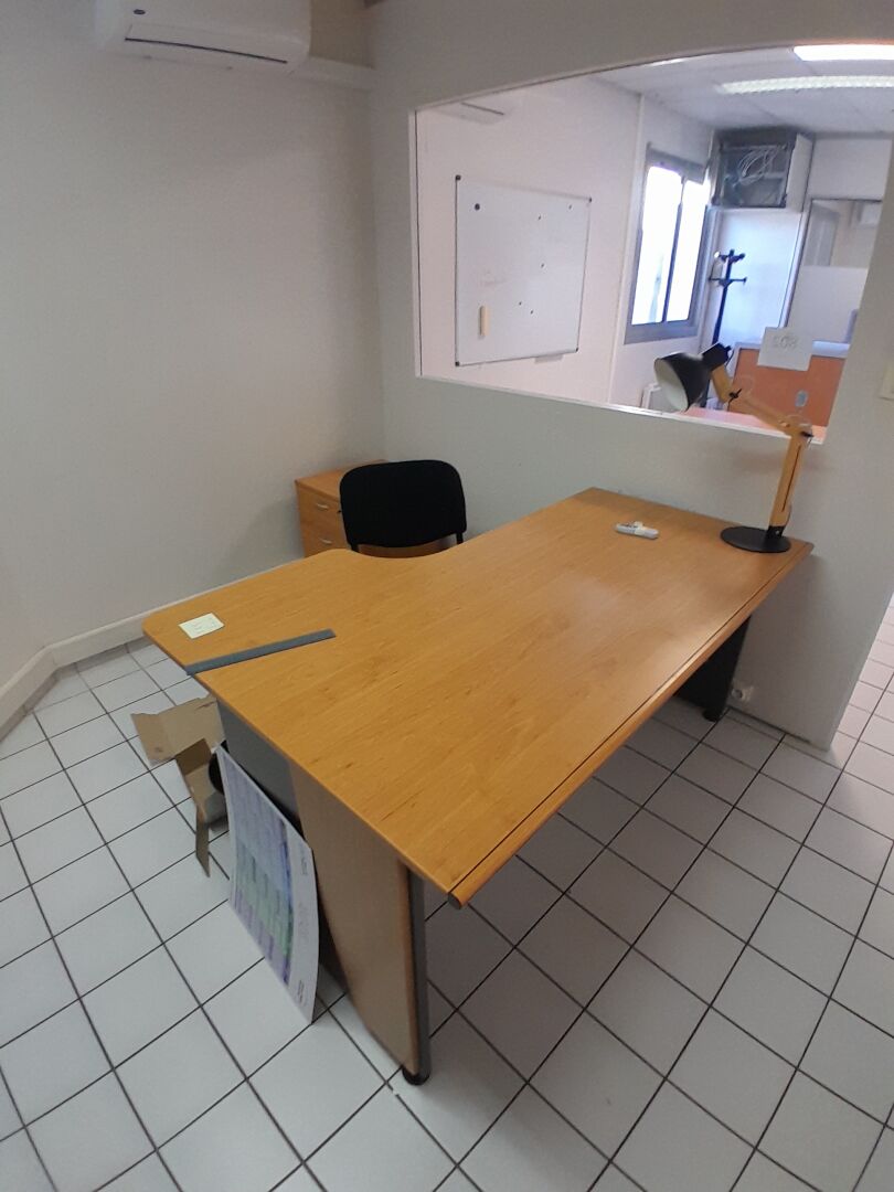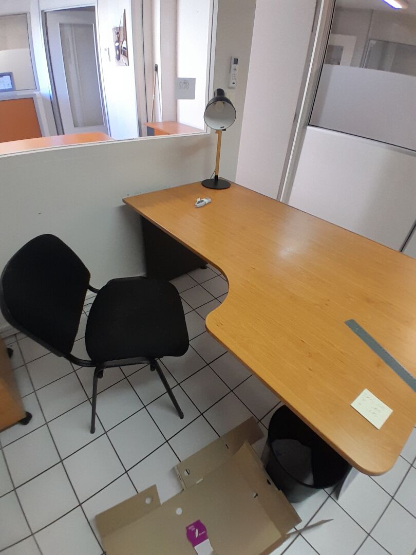 1 meuble mi-hauteur métal gris à rideau coulissant façon bois L 120 P 43 H 100 cm 1 bureau mélaminé gris et façon bois L 188 P 100 H 75 cm 2 caissons mobiles 3 tiroirs dont 1 caisson L 45 P 80 H 76 cm 1 tableau blanc 1 armoire mélaminé façon bois 2 portes L 78 P 43 H 185 cm 1 bureau mélaminé façon bois L 178 P 104 H 115 cm + 1 lampe de bureau 1 chaise visiteur tissu noir + 1 caisson mobile 2 tiroirs + 1 meuble 4 étagères noires L 44 P 40 H 184 CM (frais de mise à disposition 10 € TTC)