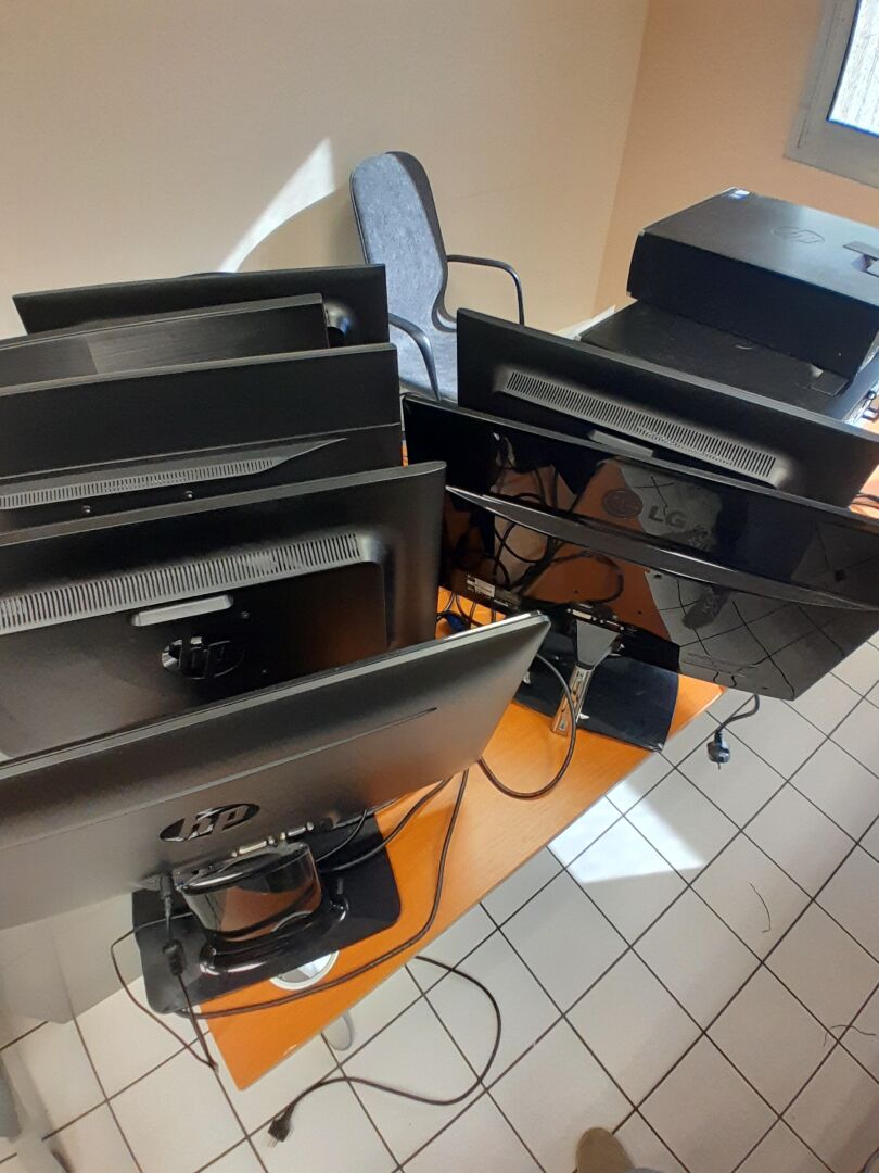 7 UC COMPAQ PRO 6300, 7 écrans dont H P , ACER, LG en 24" (mdp inconnu) 3 claviers, 1 dock DELL (frais de mise à disposition 10 € TTC)