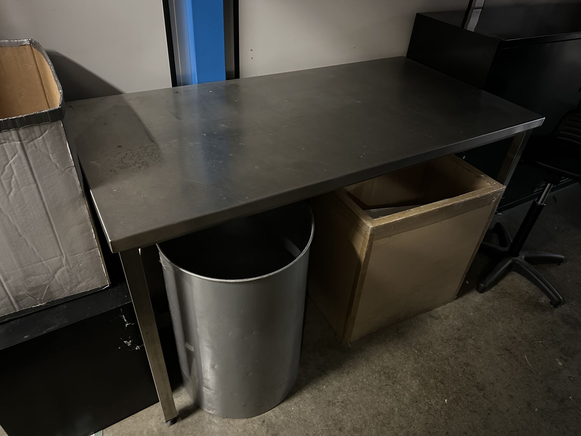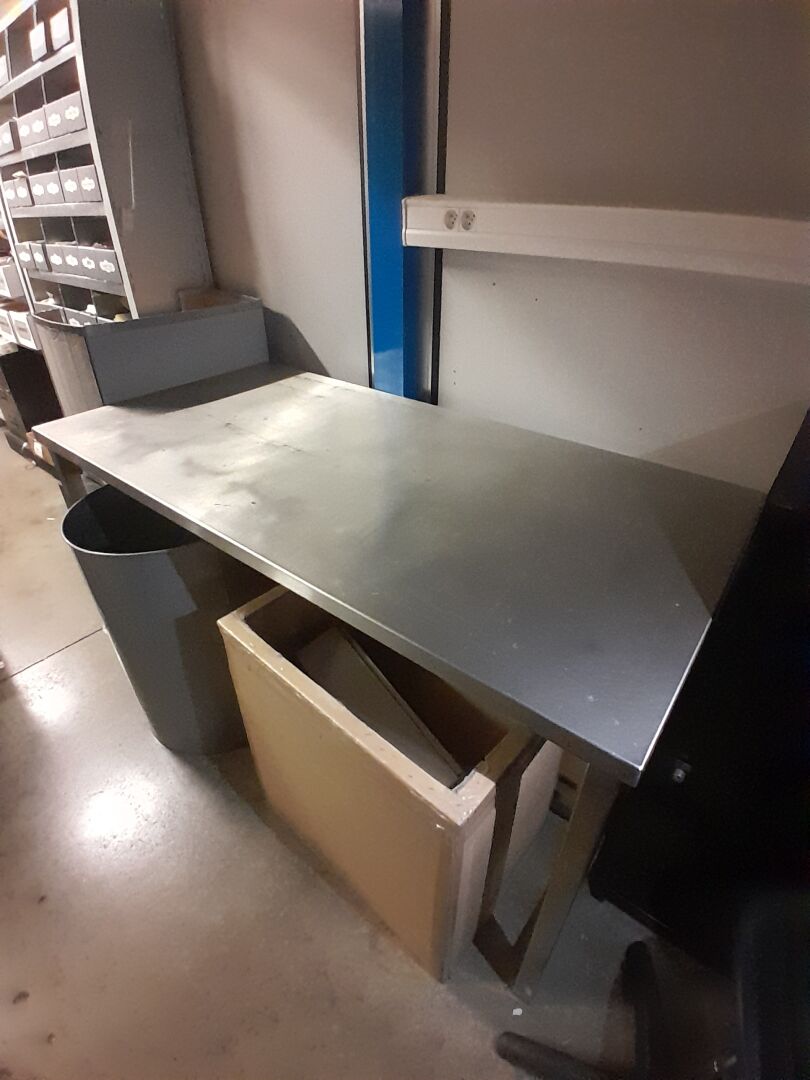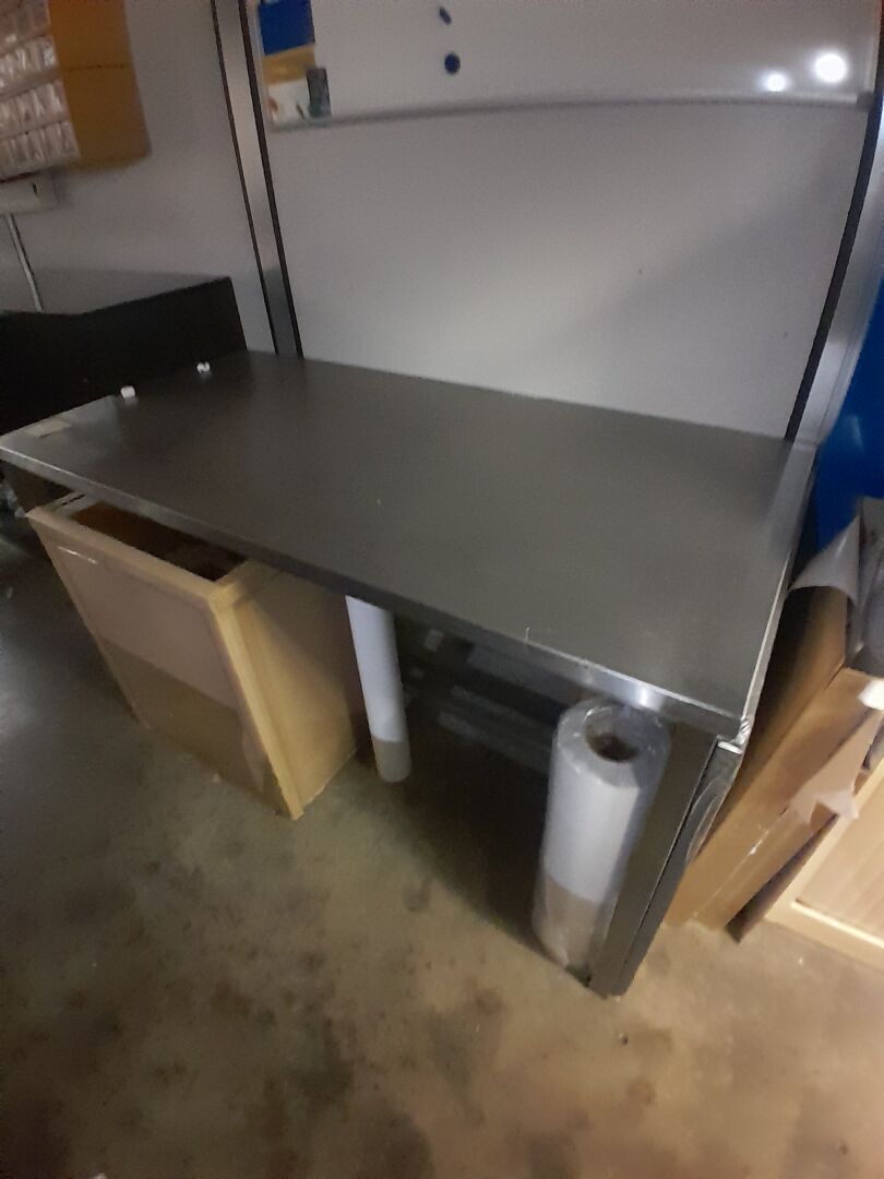4 tables inox : 2 de 180 x 75 x 95 cm avec dérouleur d'essuie tout et 2 de 150 x 75 x 85 cm (frais de mise à disposition 10 € TTC)