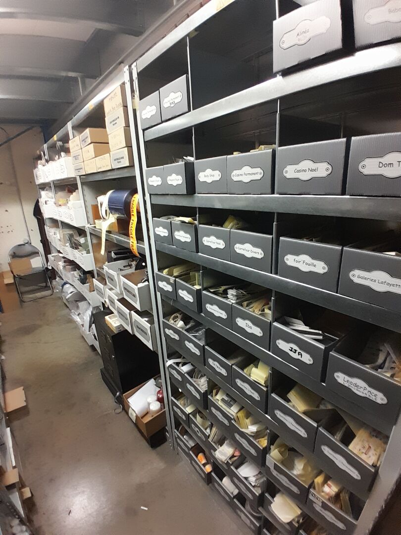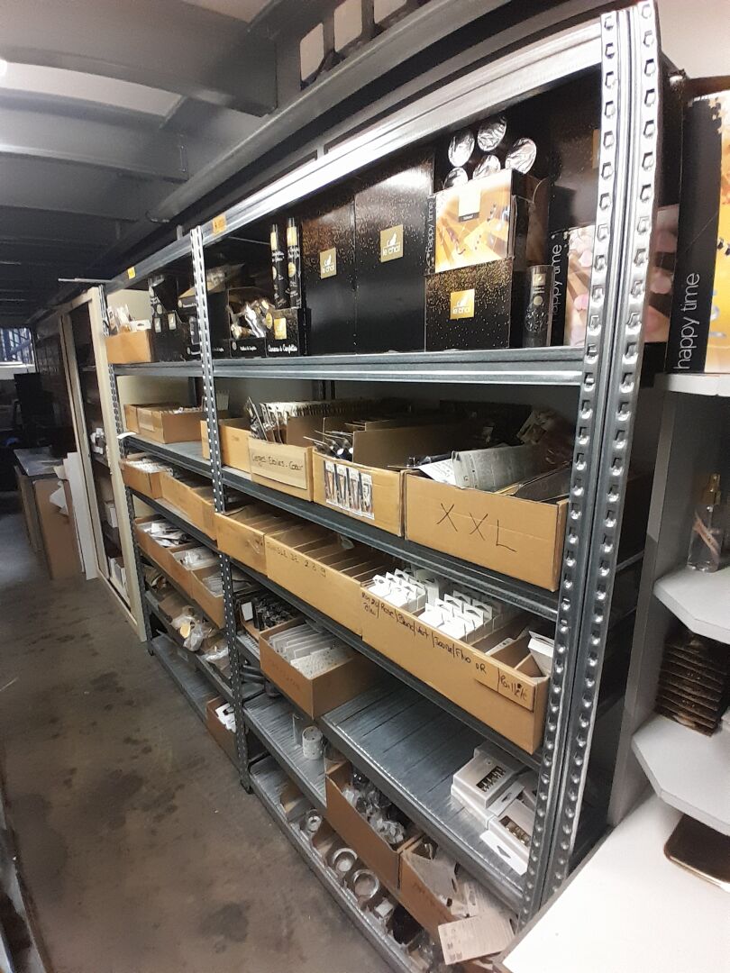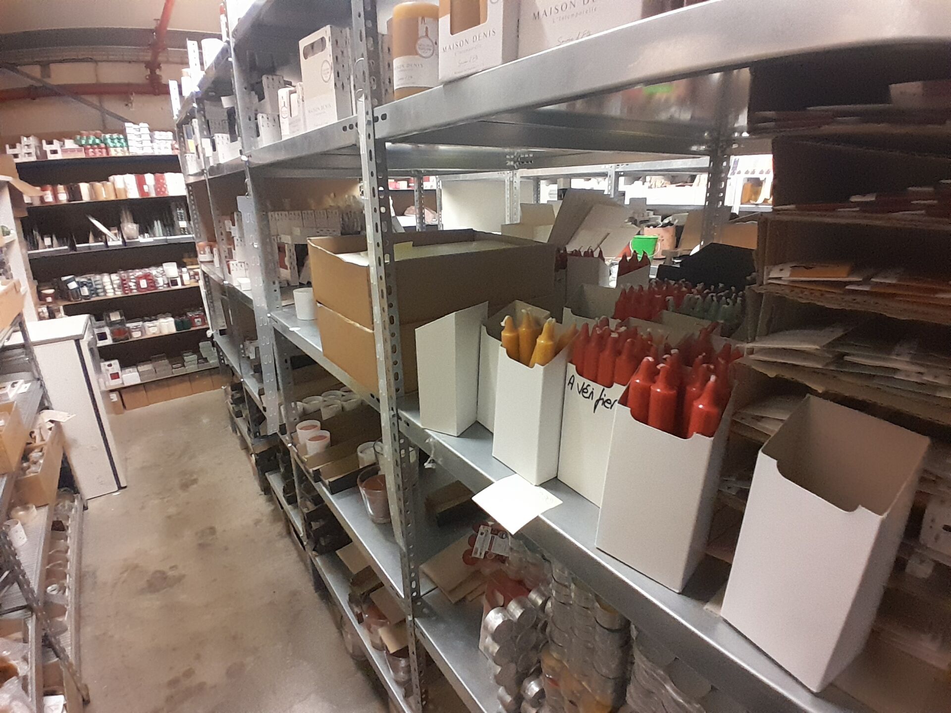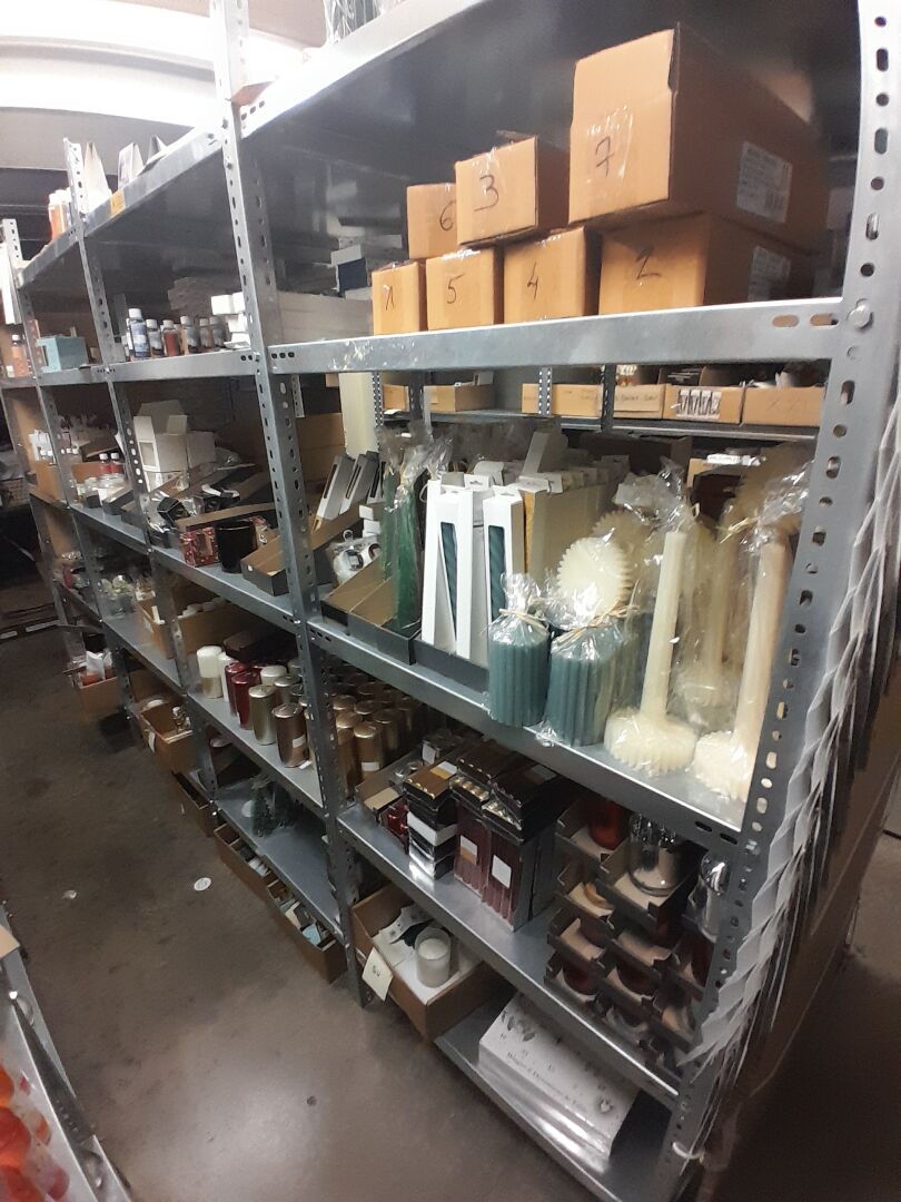 1 stock d'échantillons de bougies, parfums d'intérieur, contenants à bougies verre ou céramique, le tout dans 5 travées d'étagères (frais de mise à disposition 10 € TTC)