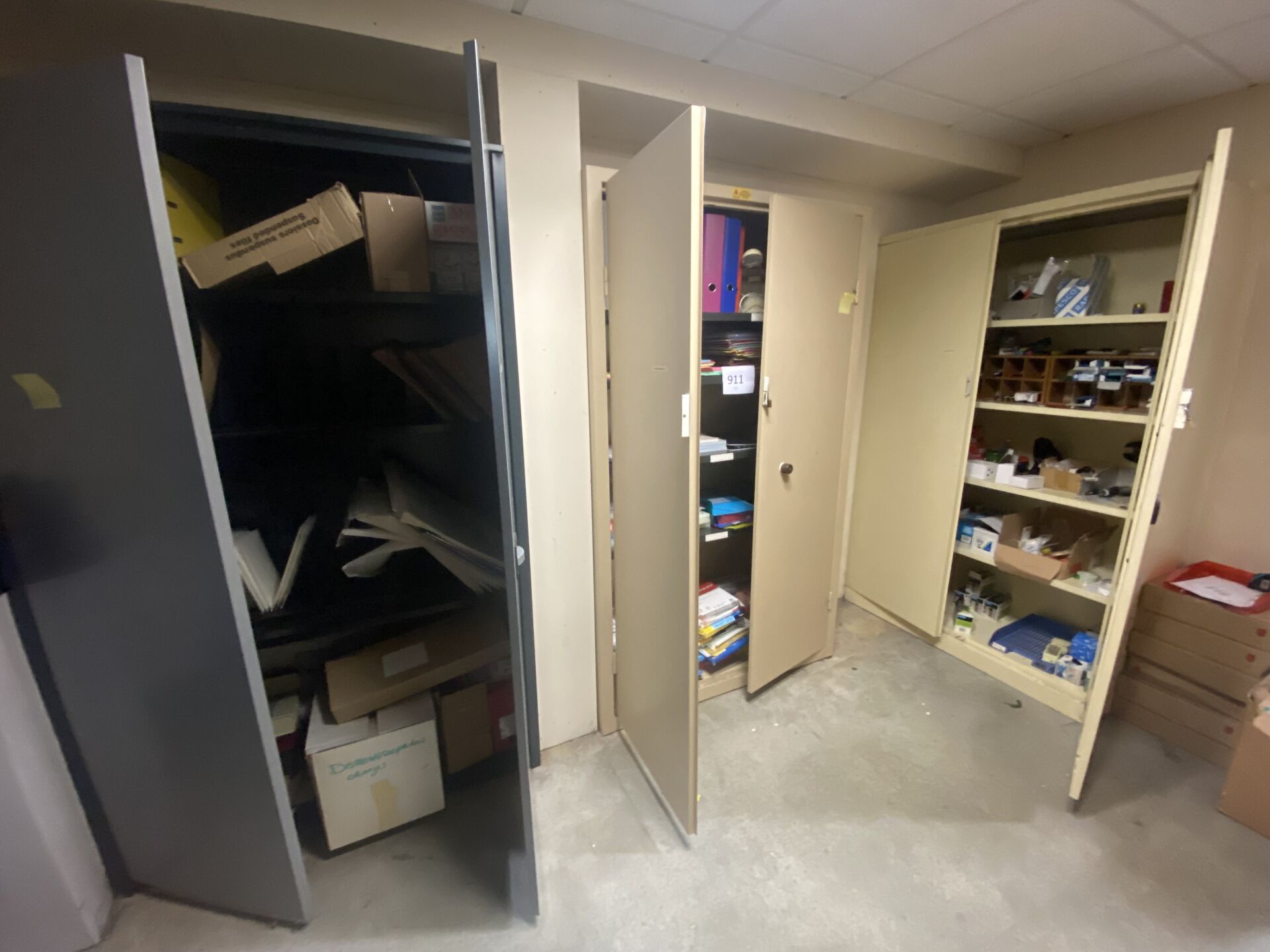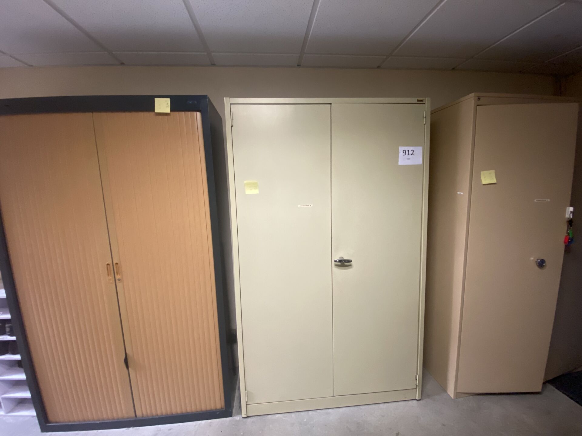 6 armoires : 1 à rideau métal noir 120 x 45 x 200 cm 5 à 2 portes métal beige ou gris 120 x 47 x 200 cm (frais de mise à disposition 10 € TTC)