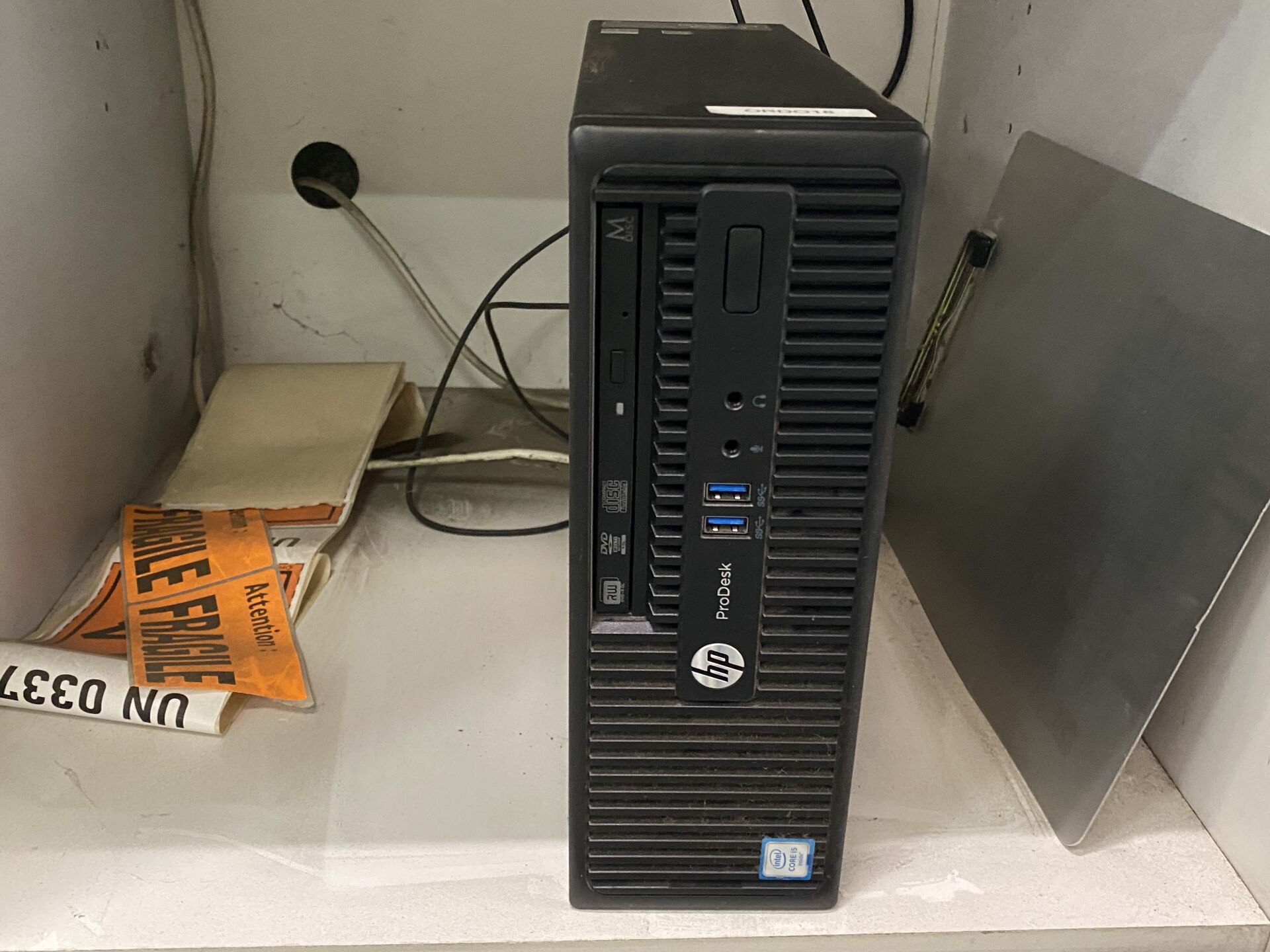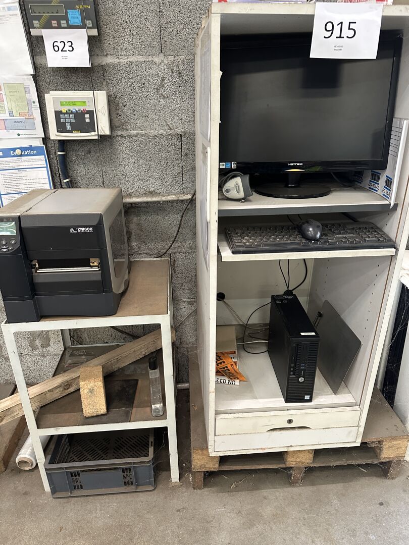 1 unité centrale HP PRODESK INTEL CORE I5 No CZC6447MC8 (mdp inconnu) 1 écran HANNS G 1 clavier, 1 souris 1 douchette SYMBOL 1 imprimante à étiquettes ZEBRA ZM 600 dans caisson mélaminé et desserte métal (frais de mise à disposition 10 € TTC)