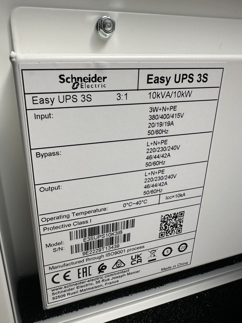 1 onduleur SCHNEIDER UPS 3S 10 KW (frais de mise à disposition 10 € TTC)