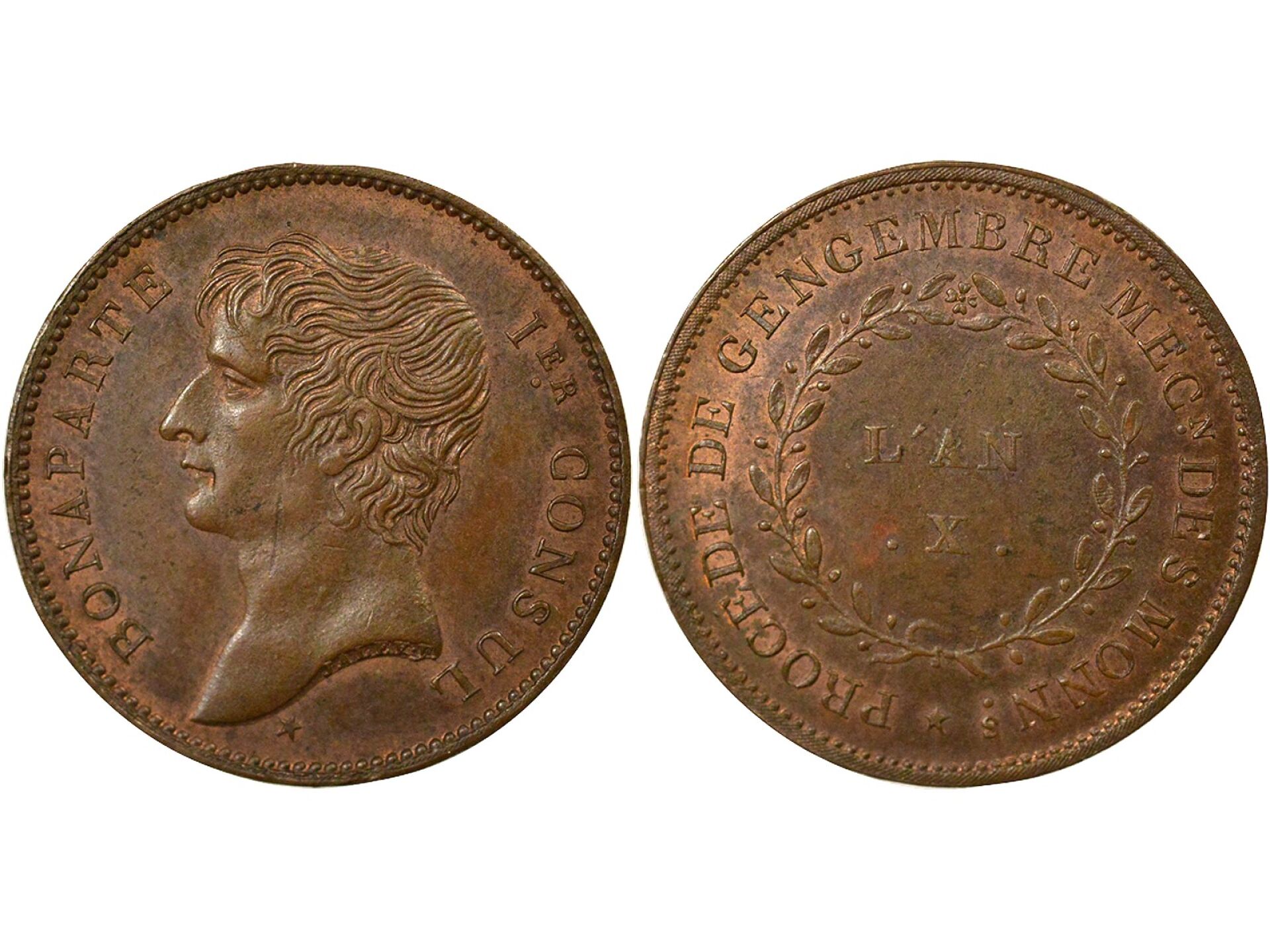 Essai au module de 2 francs Bonaparte par Jaley, procédé de Gengembre, 1802 Paris, TTB+
