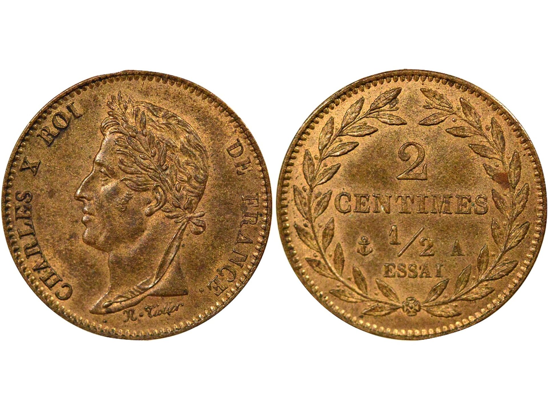 Essai de 2 Centimes 1/2, Charles X, ND (1825) Paris, SPL/FDC