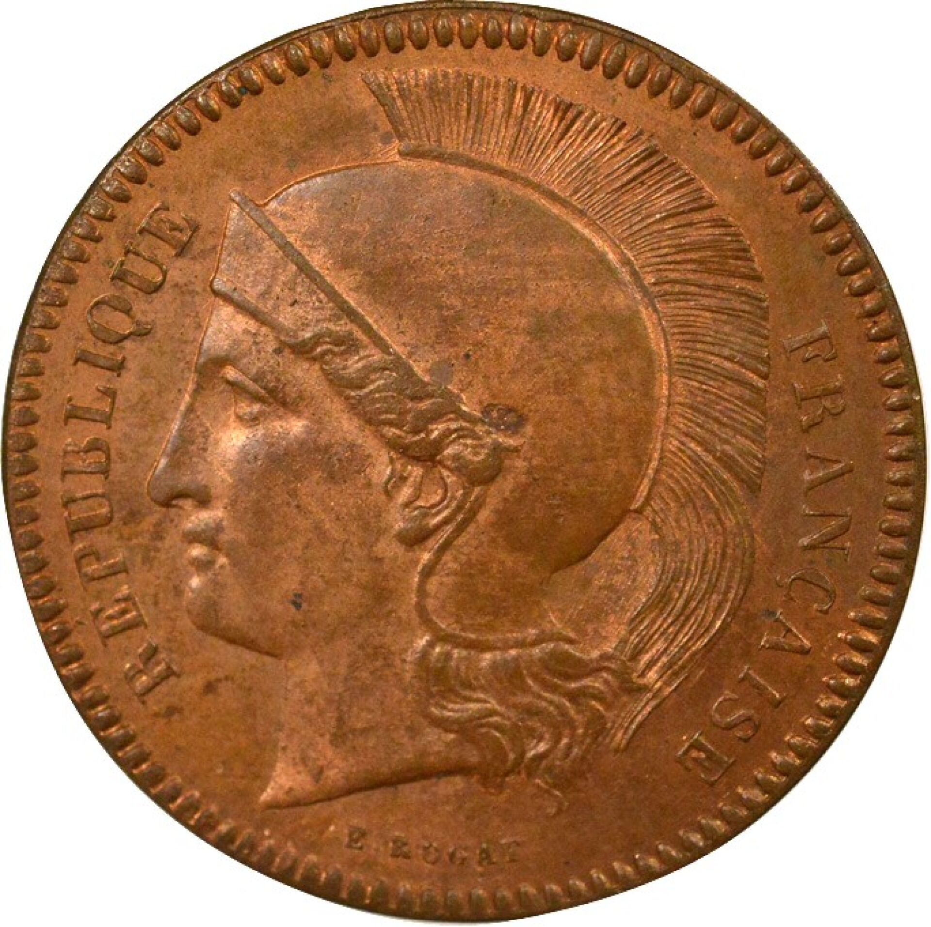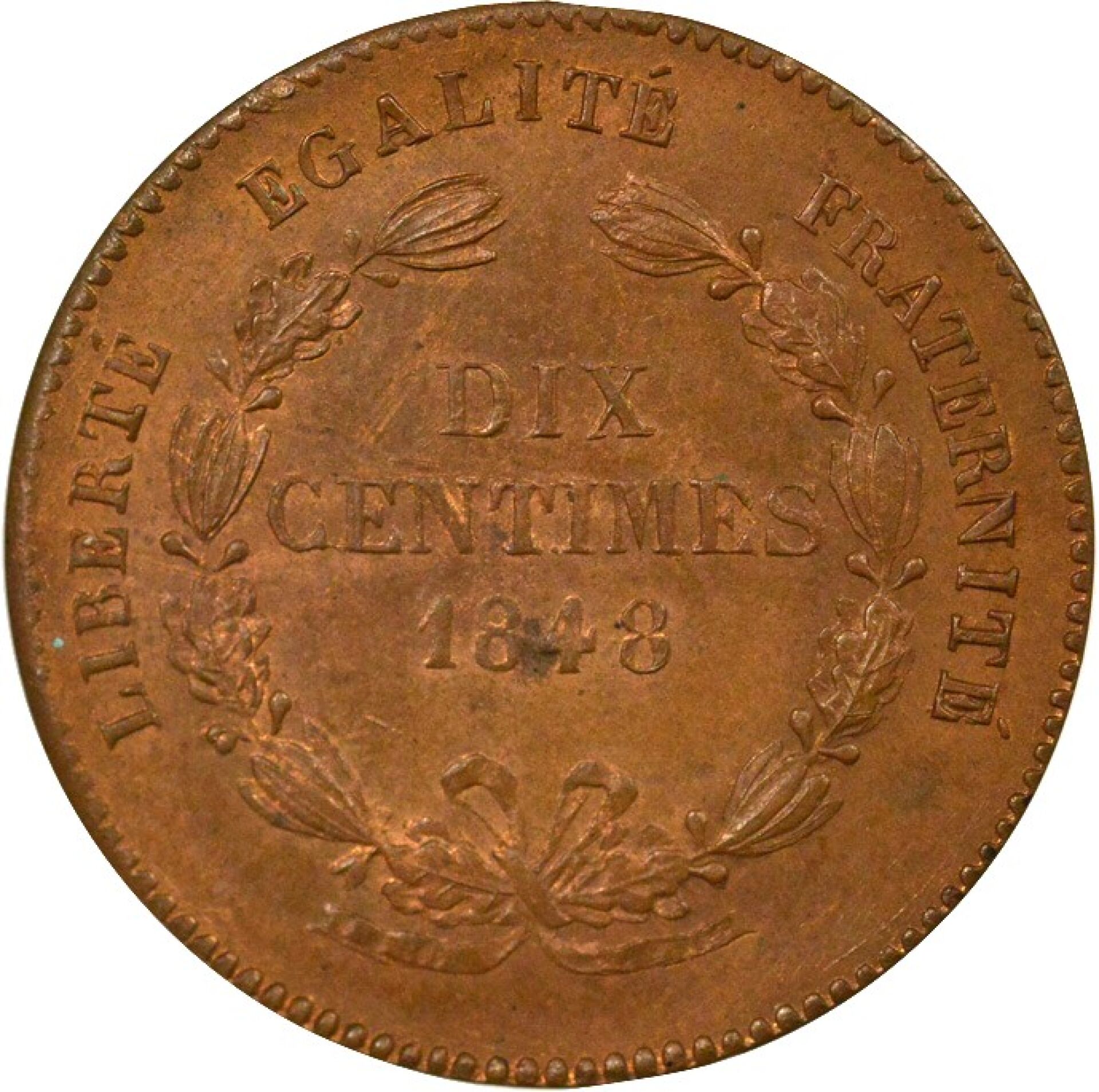 Essai de 10 Centimes en cuivre par Rogat, 2e concours, 2e revers, 1848 Paris, SPL