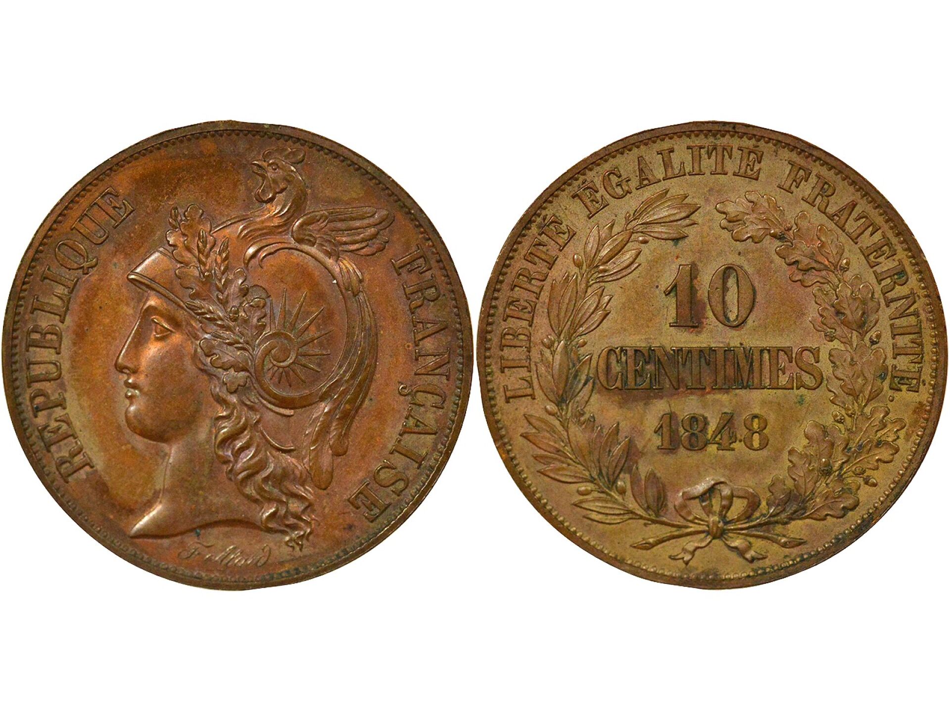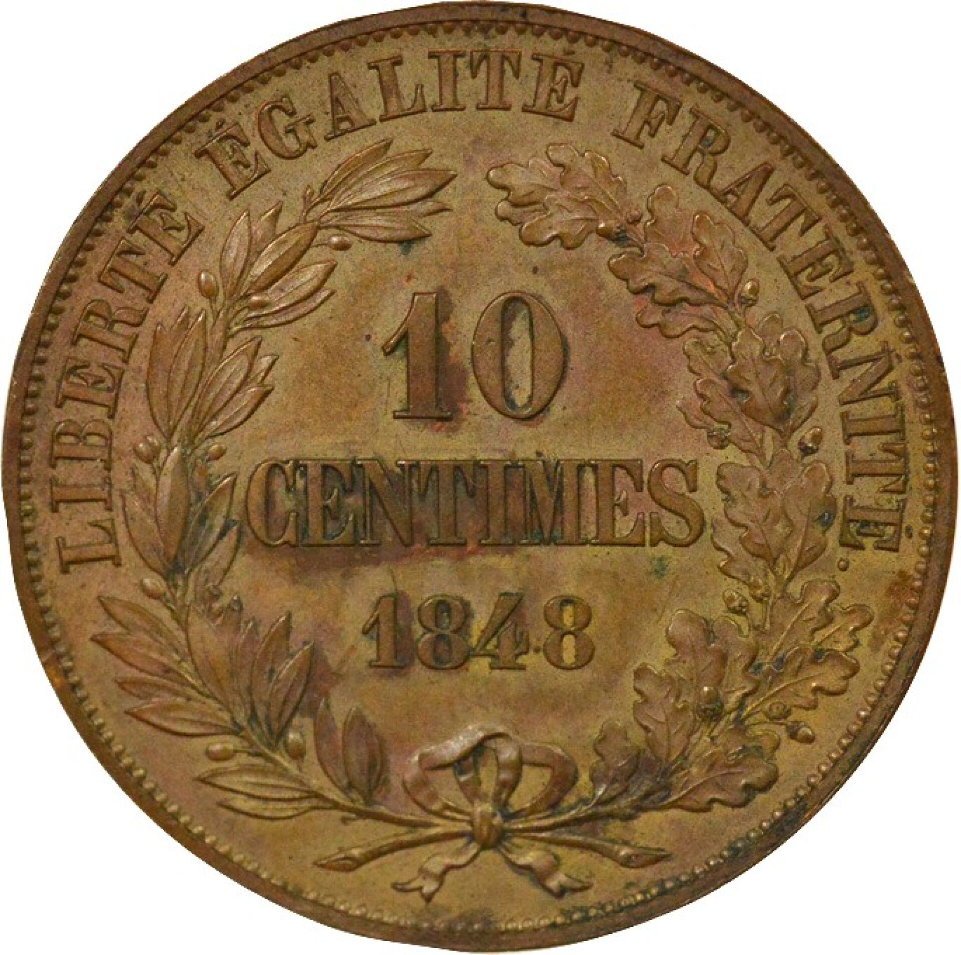 Essai de 10 Centimes en cuivre par Alard, 1e revers, 1848 Paris, SPL