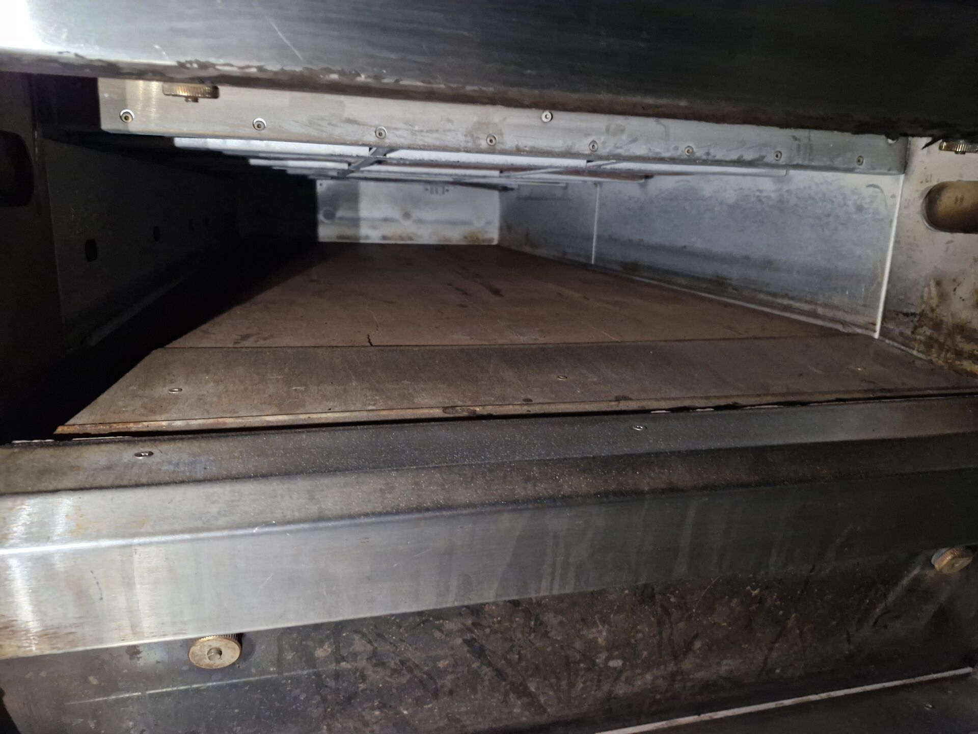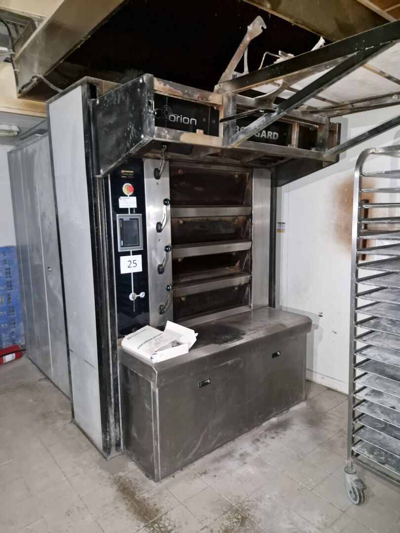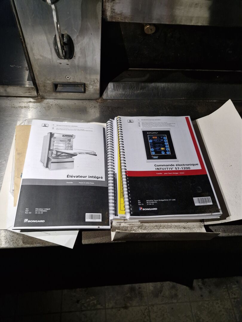 1 four électrique 4 bouches BONGARD Orion 8014163, 285 x 170 cm, avec notice 1 tapis enfourneur/élévateur intégré sur rail 1 lot de plaques à pâtisserie, environ 60