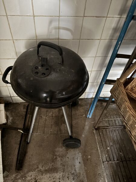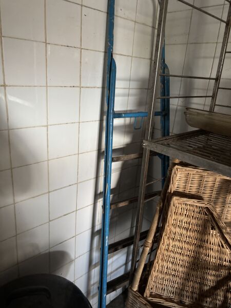Barbecue Escabeau en métal laqué bleu, à 5 marches Huche à pain 2 panières en osier Poubelle à pédale en PVC blanc (cassée)