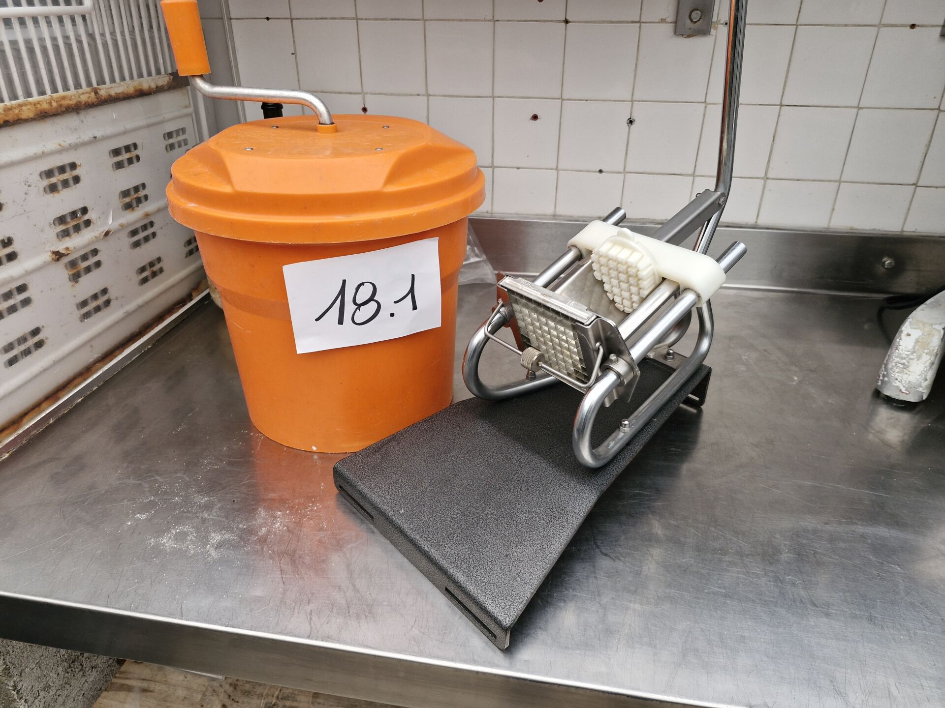 1 coupe-frites inox, 1 essoreuse à salade DYNAMIC